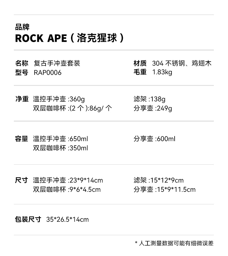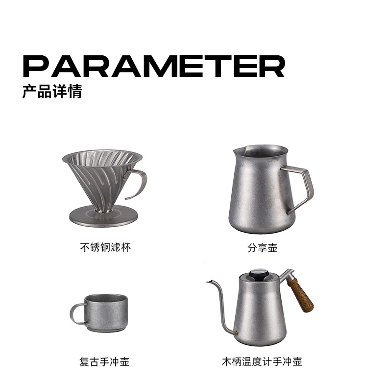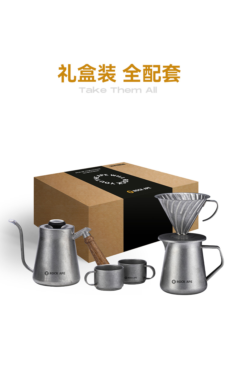 【自营】洛克猩球-复古手冲壶套装银色