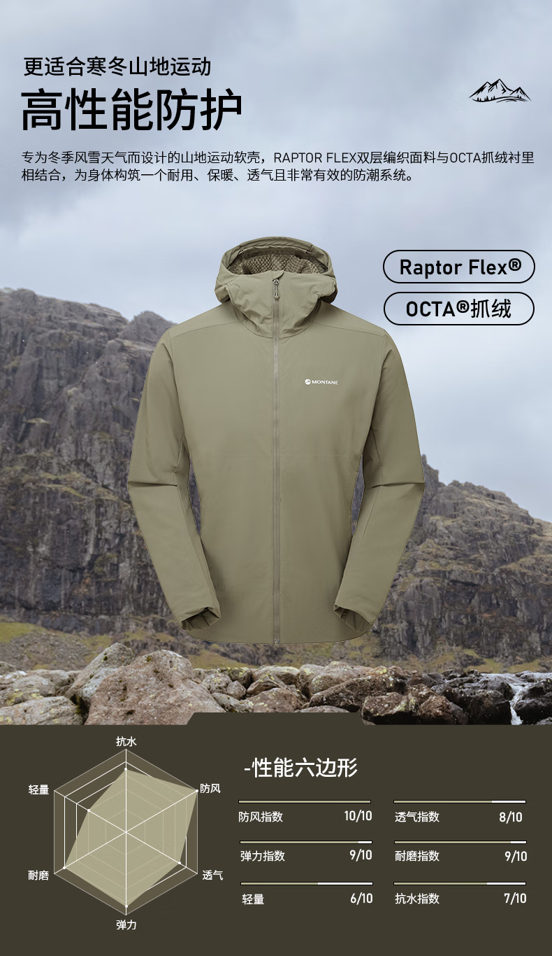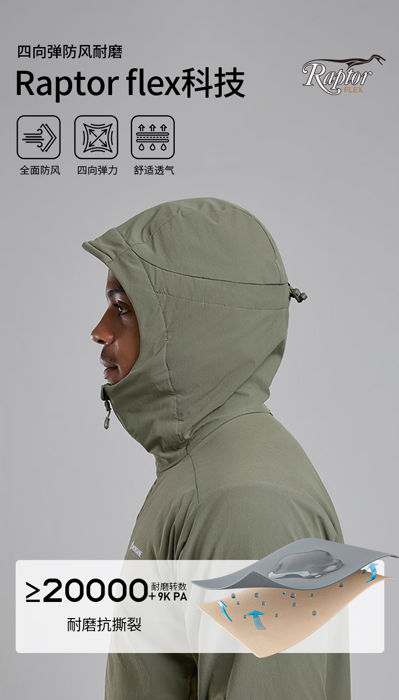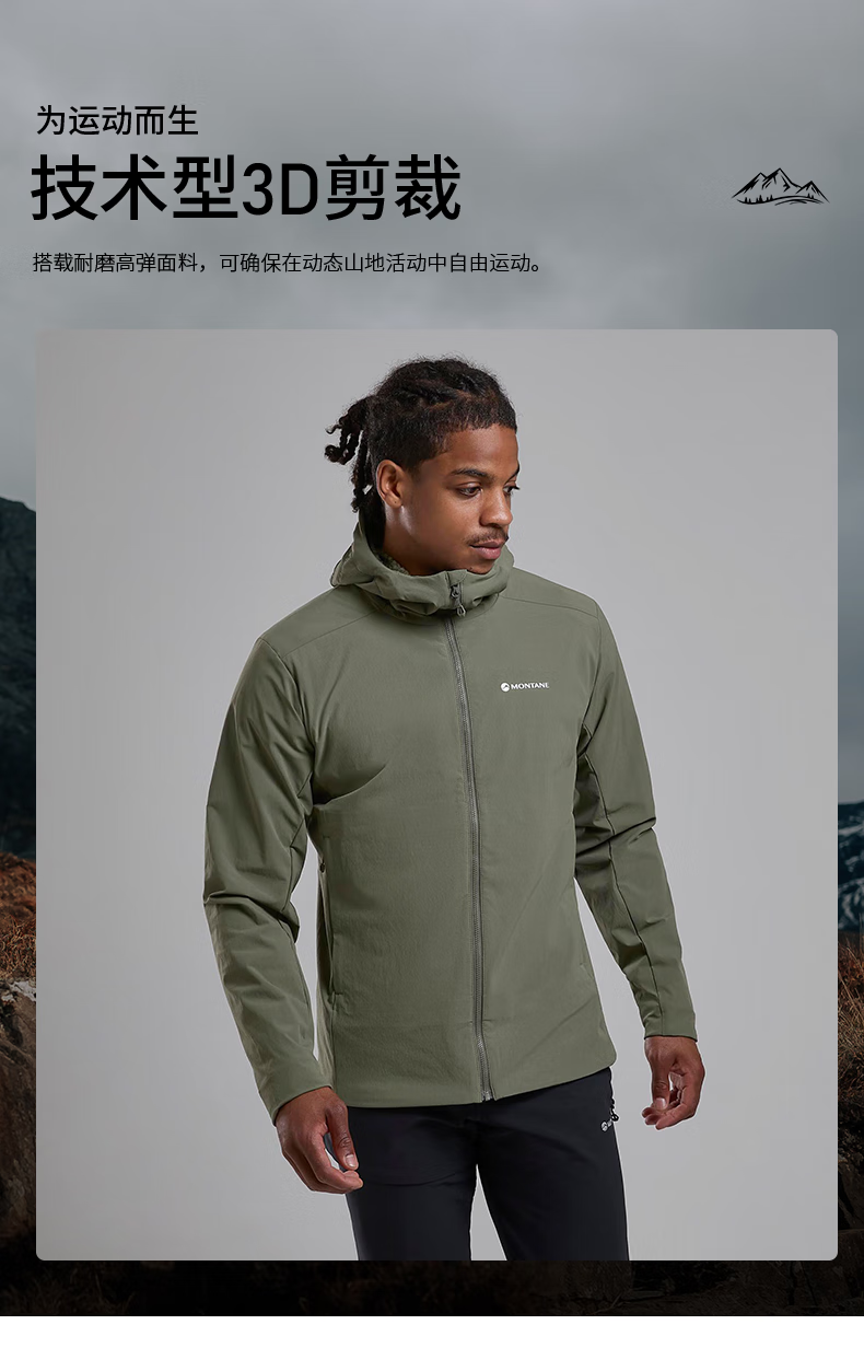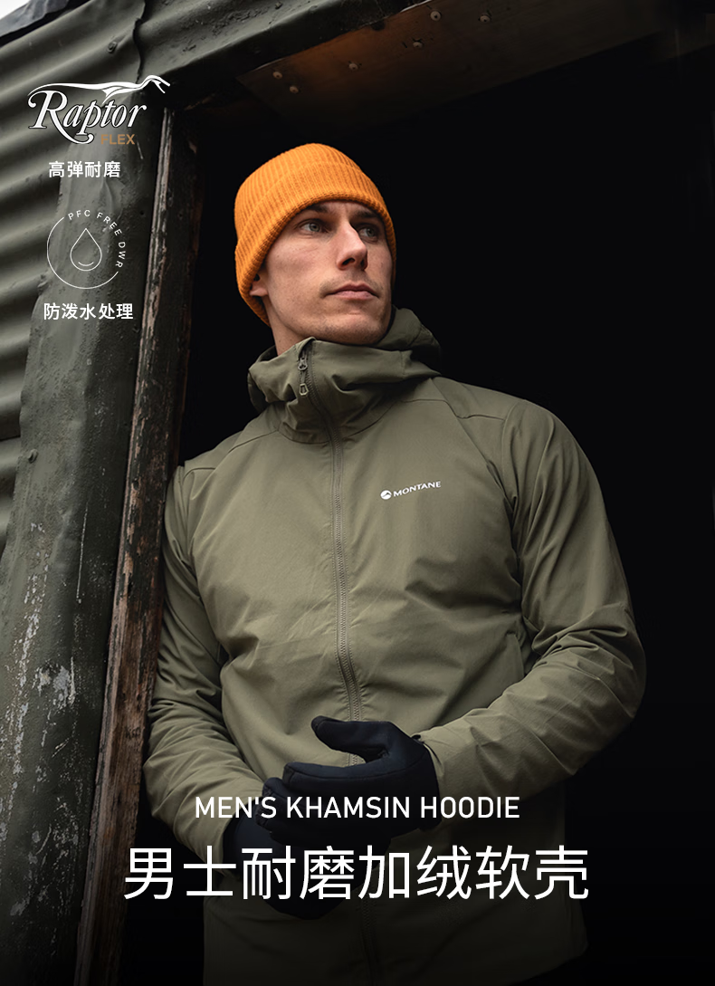 MONTANE 盟泰恩KHAMSIN HOODIE户外软壳加绒男 防风耐磨保暖弹力舒适外套
