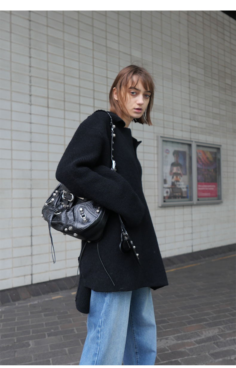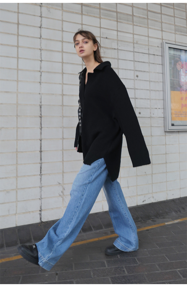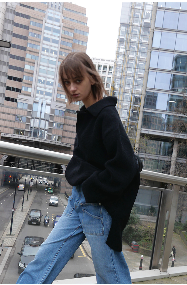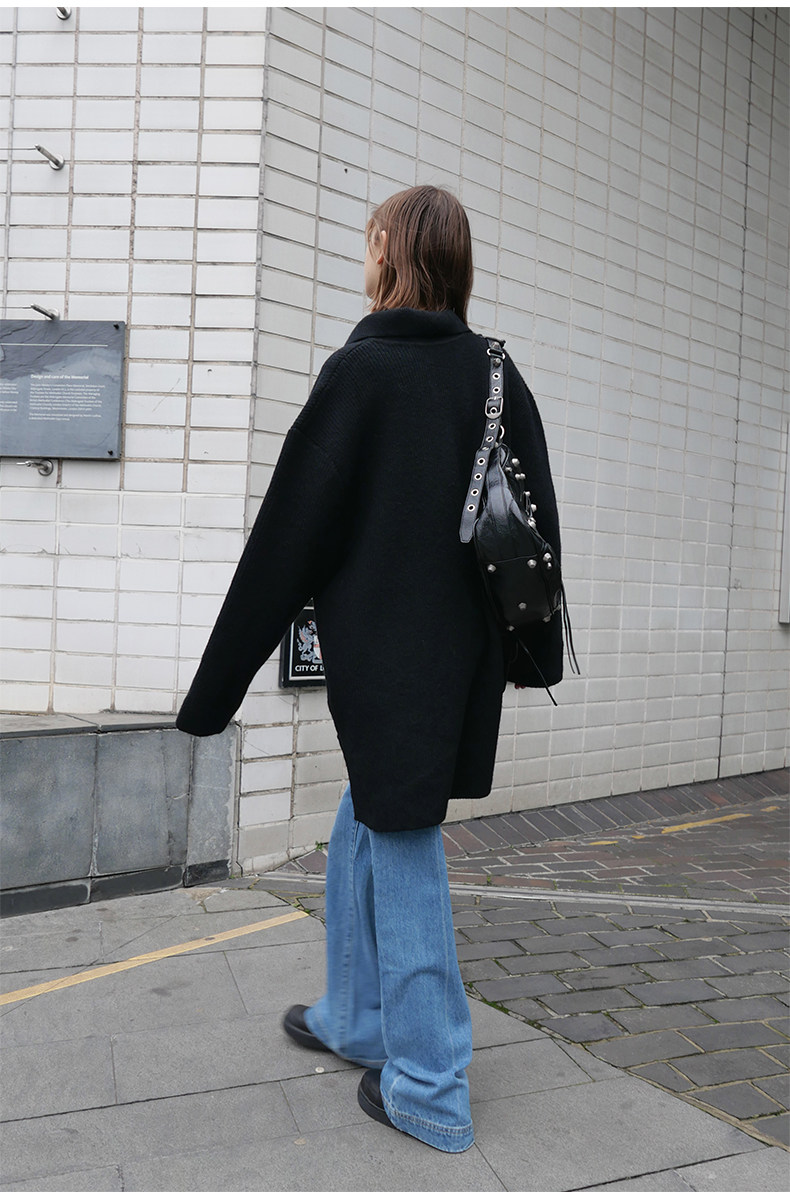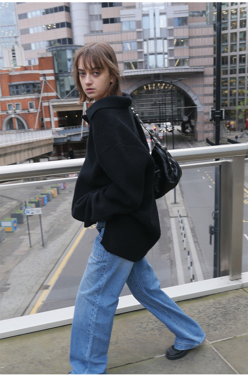 NUTH 宽松POLO开领百搭黑色慵懒针织衫毛衣