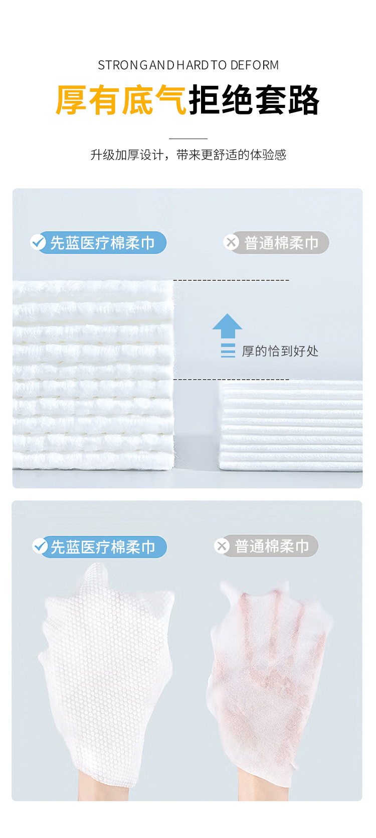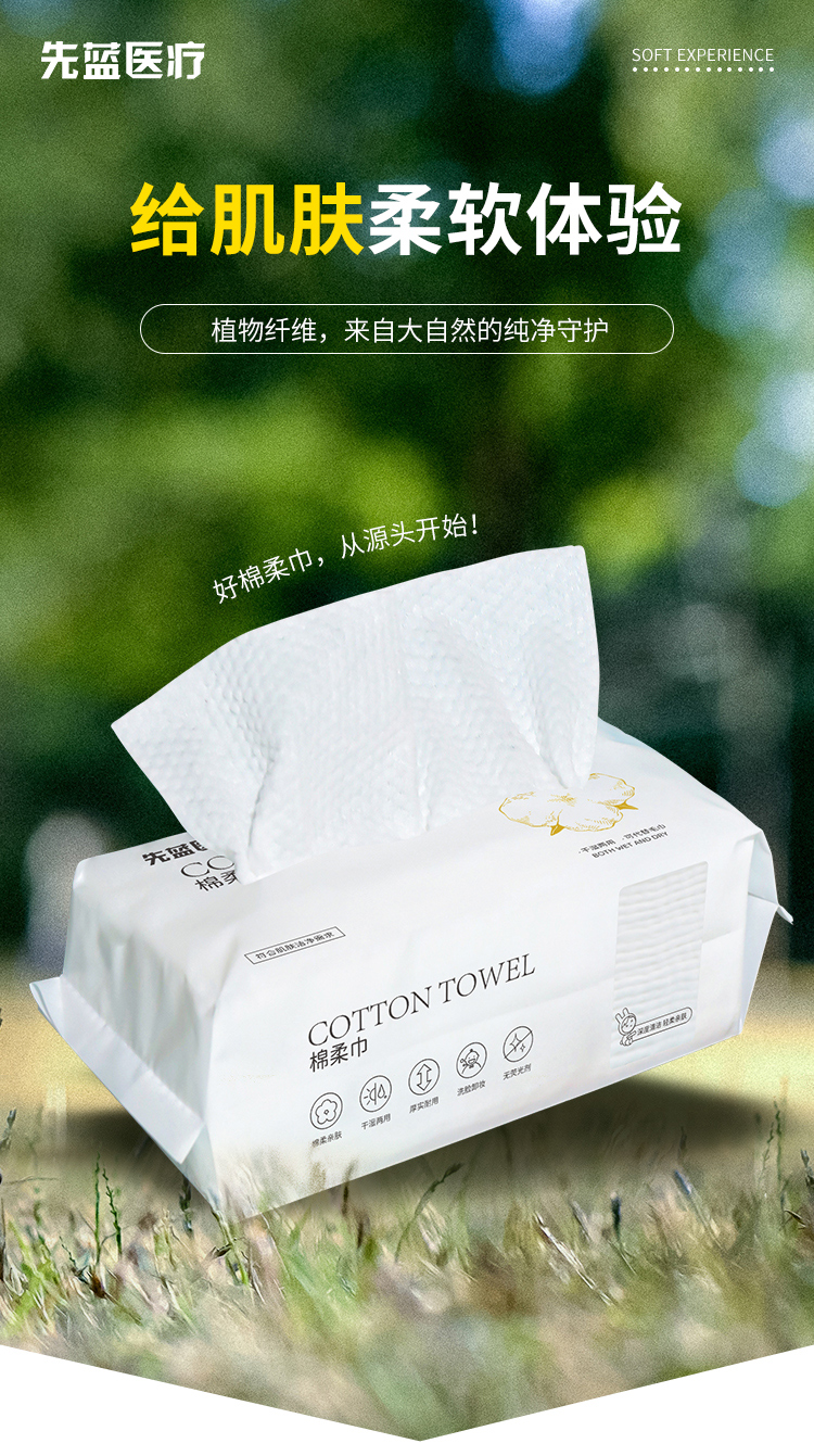 【超值5包装】先蓝棉柔洗脸巾 50抽/包 加大加厚20cm*20cm 干湿两用