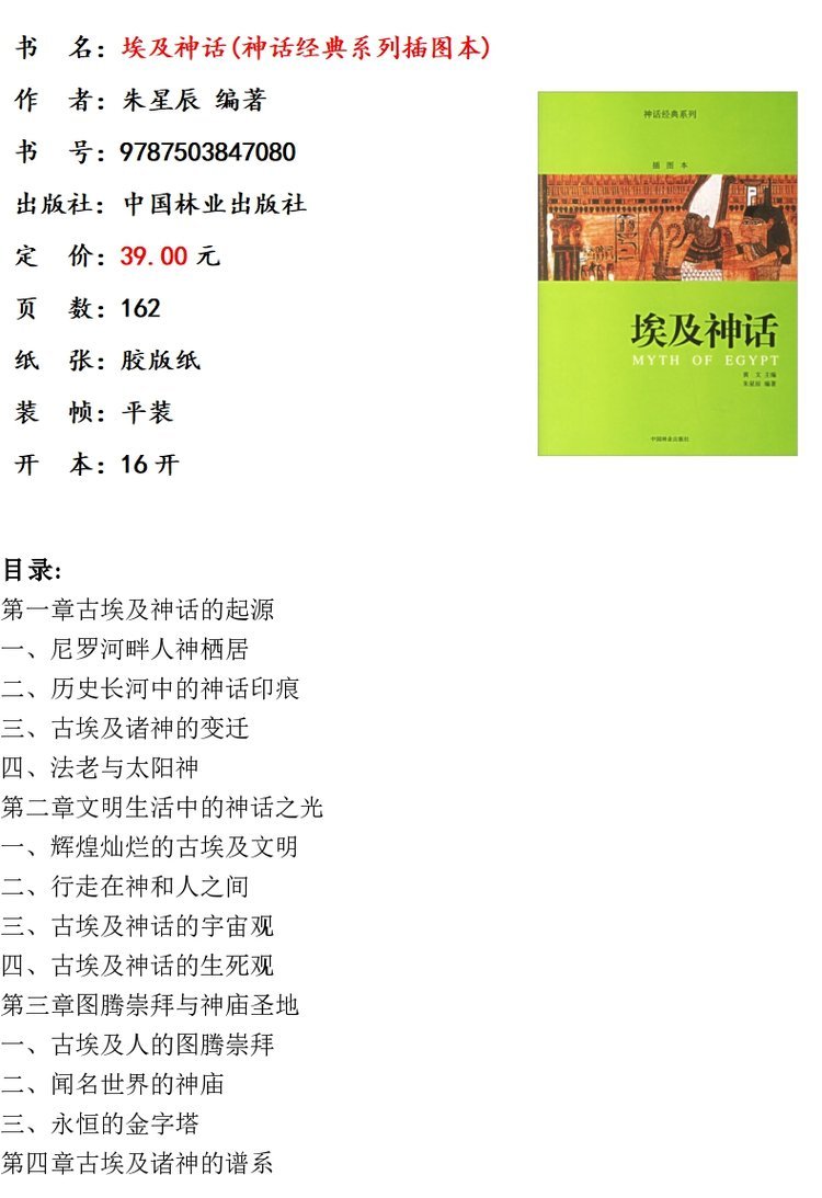 埃及神话 神话经典系列插图本4708 古埃及神话的起源 中国林业出版社 畅销书