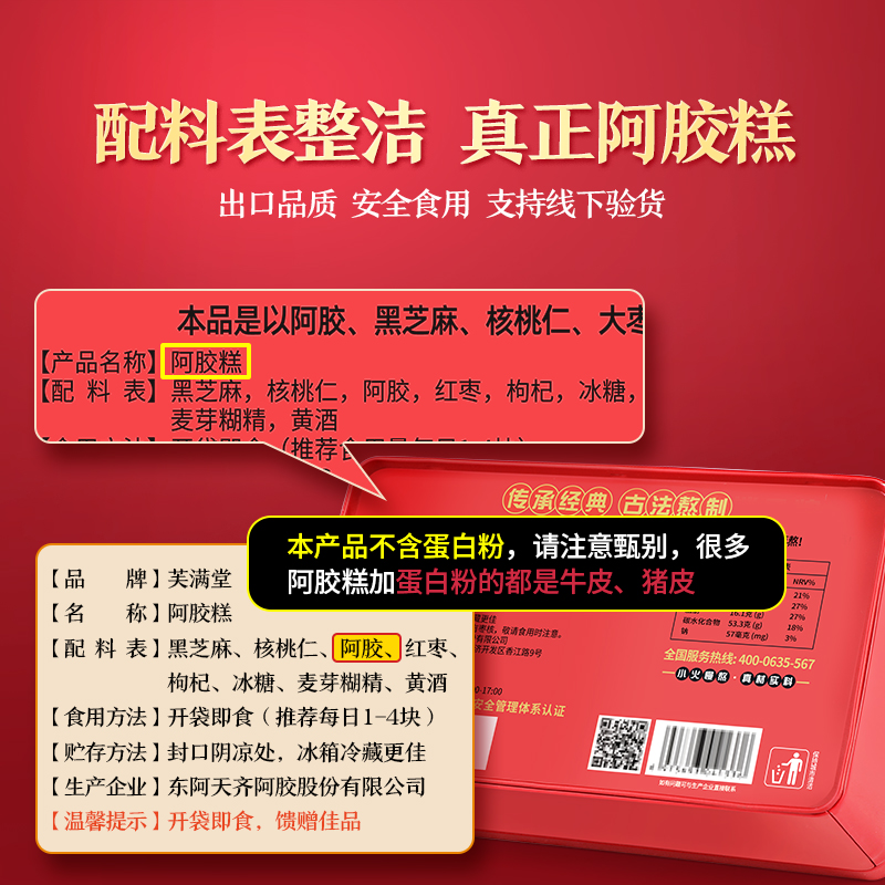 【正品保障】芙满堂 东阿正宗阿胶糕 200g/盒*4盒 驴皮现熬现发 富含核桃芝麻软糯香甜