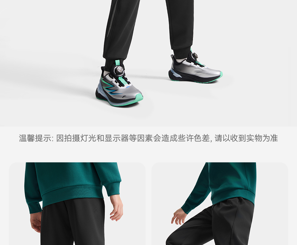 安踏儿童冬季新款男女同款大童运动长裤舒适加绒保暖御寒百搭372547777