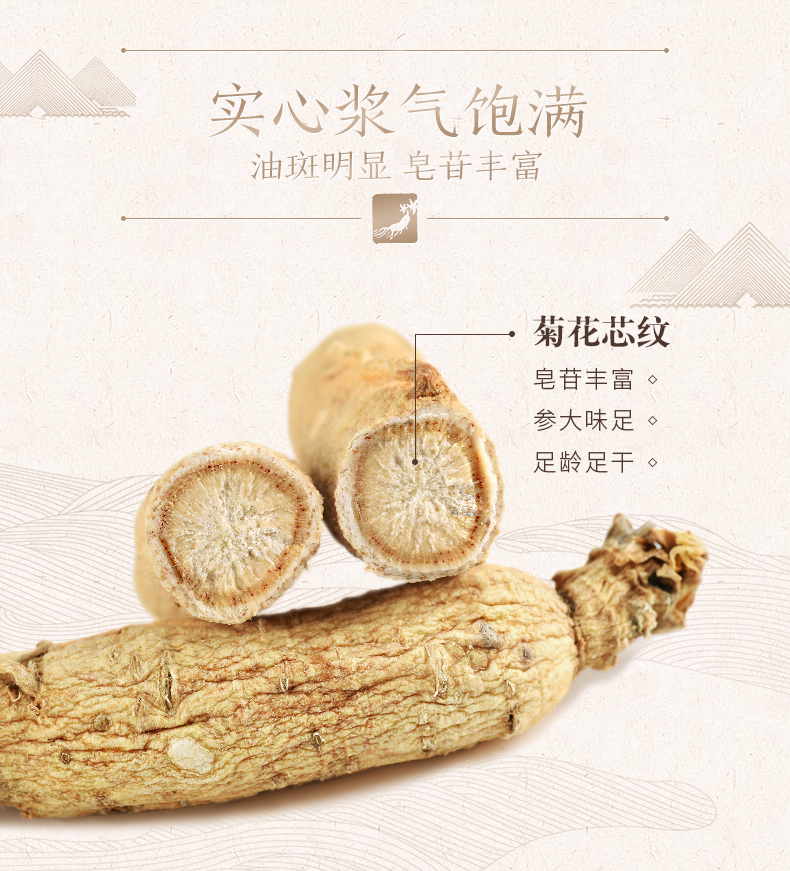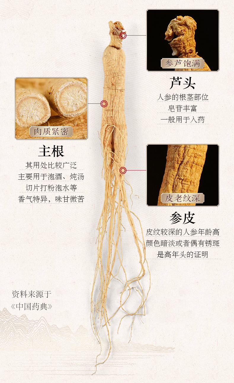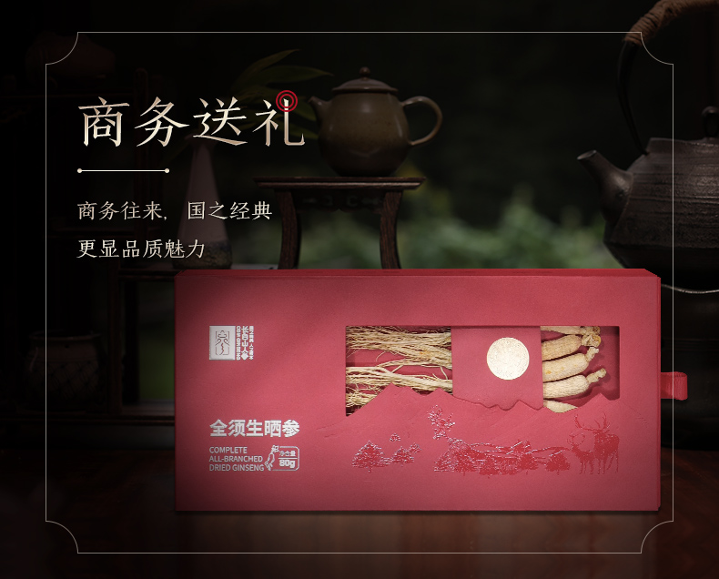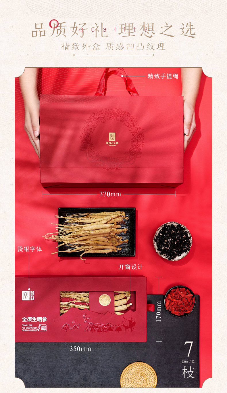 长白山人参 全须生晒参礼盒款 煲汤煮粥补品 80g/盒
