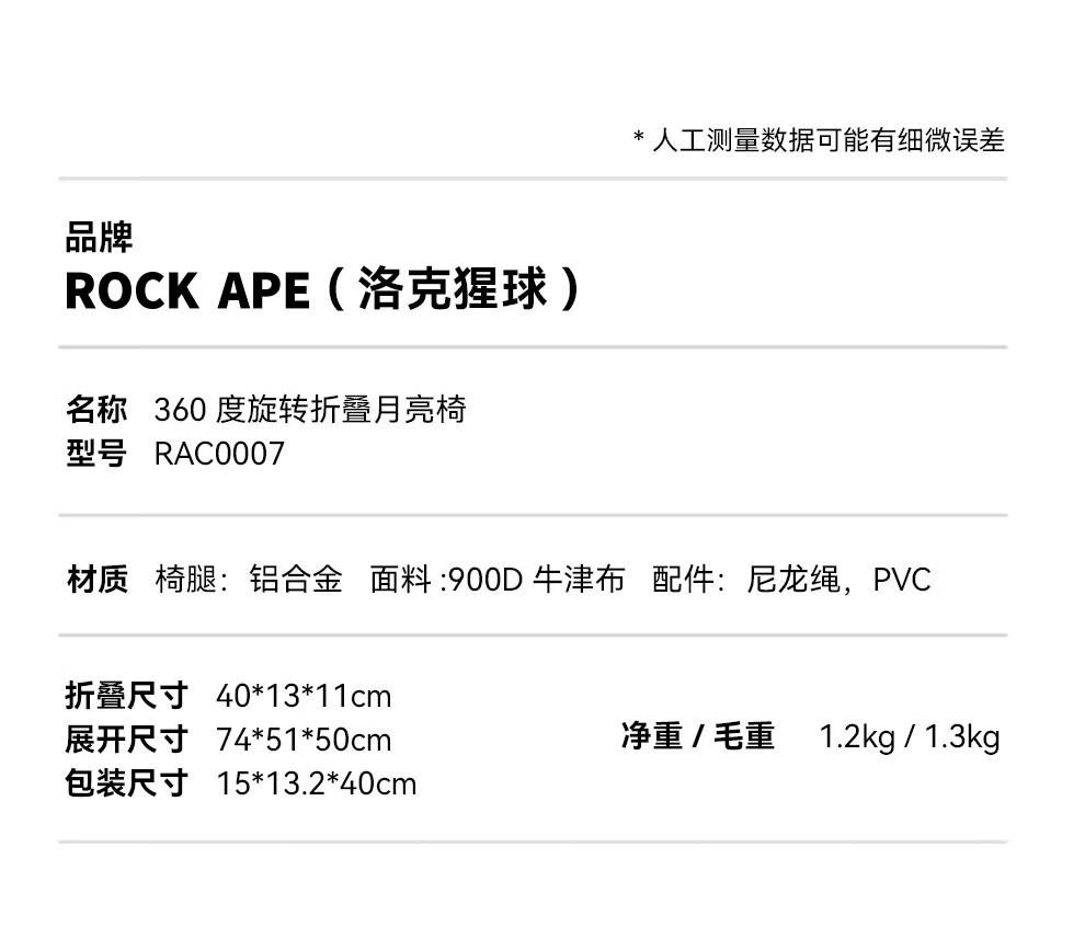 洛克猩球 360度旋转折叠月亮椅 RAC0007