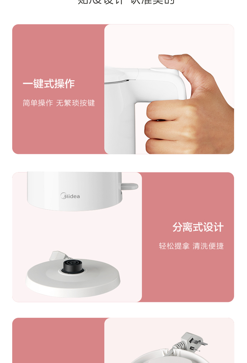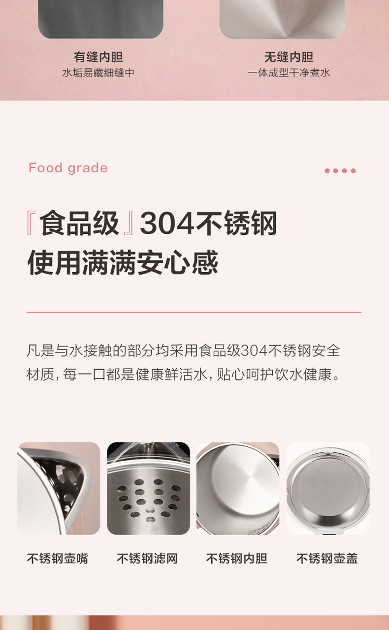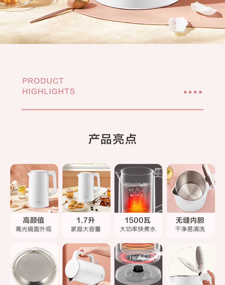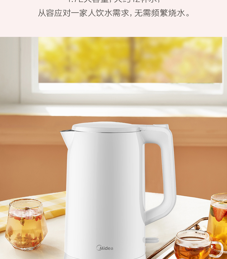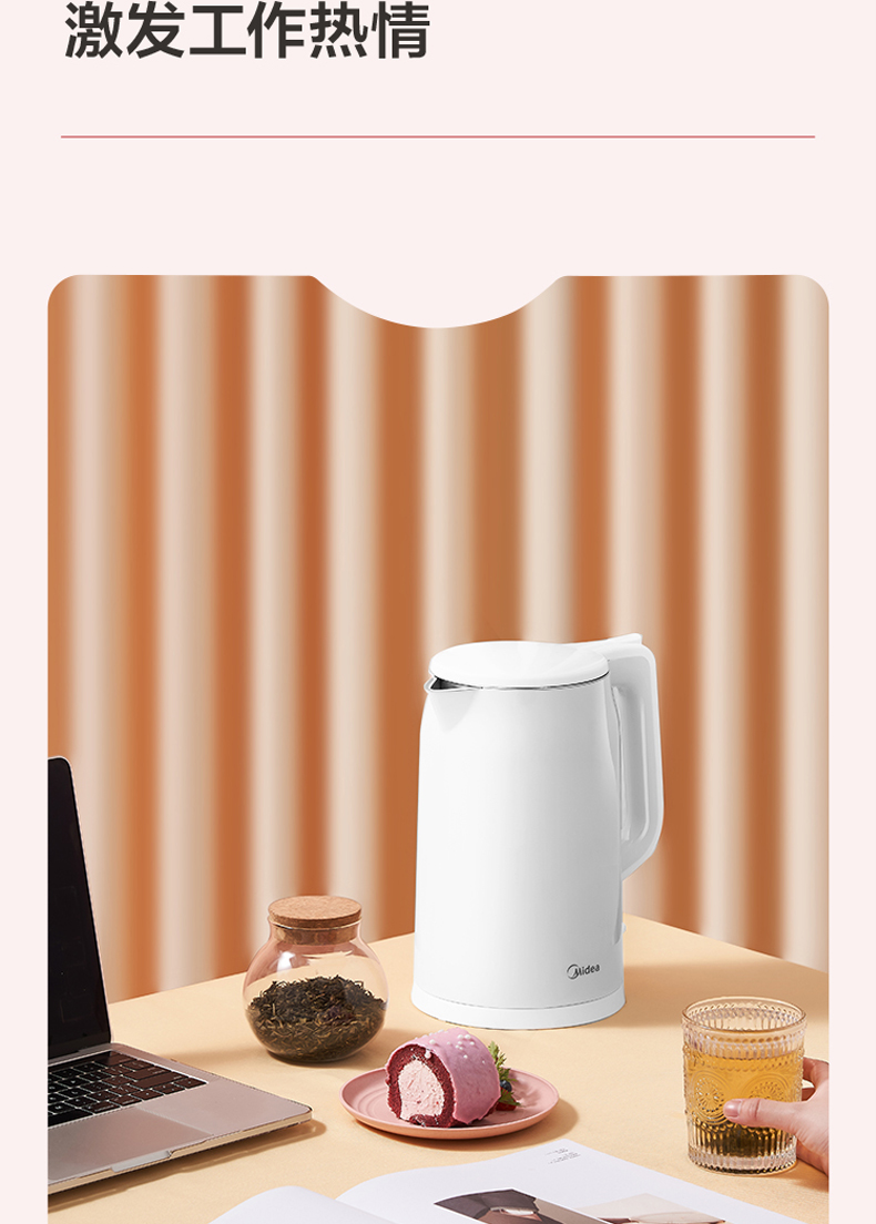 美的 电热水壶 1.7L 304不锈钢烧水壶 AEK1769