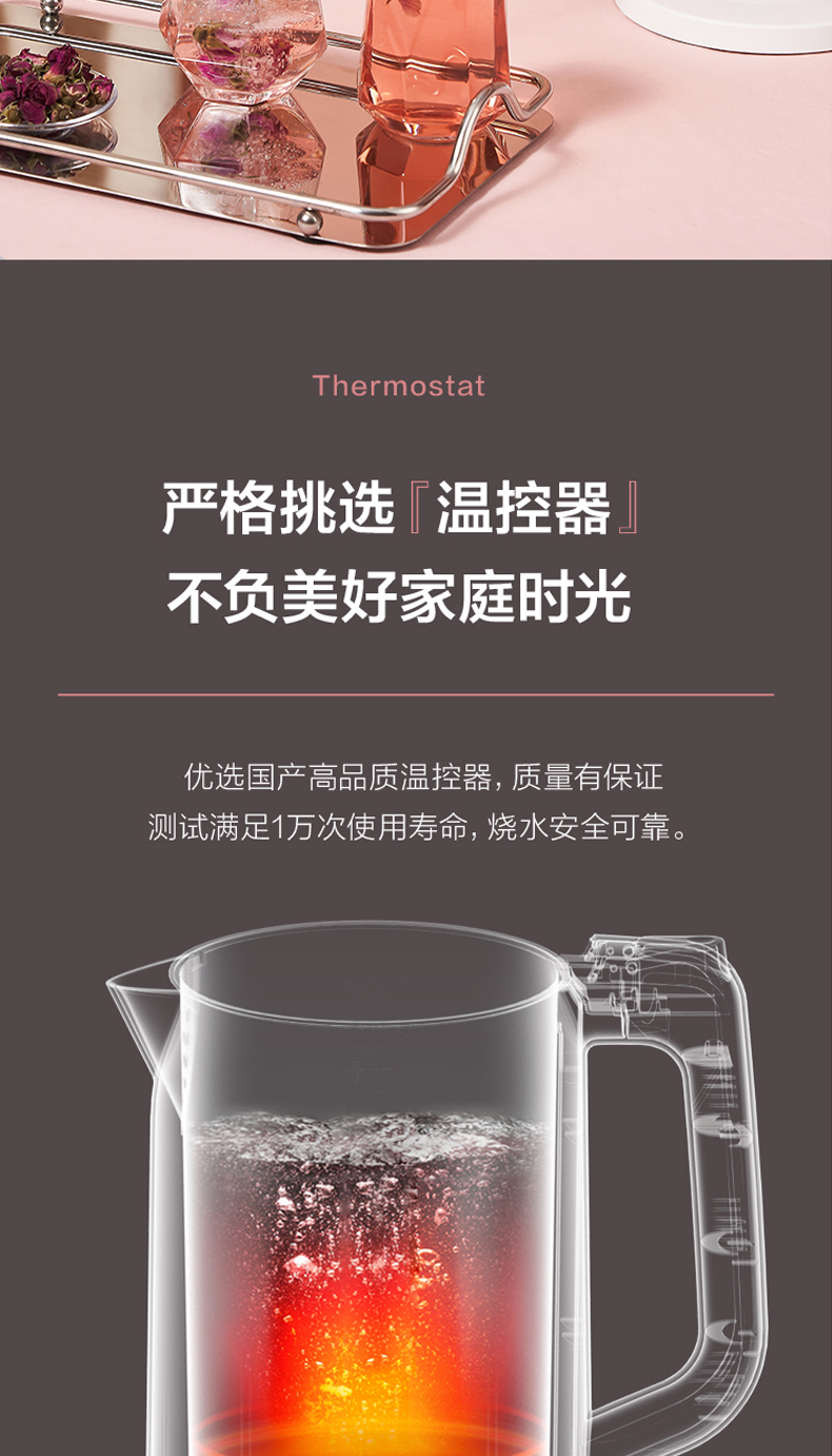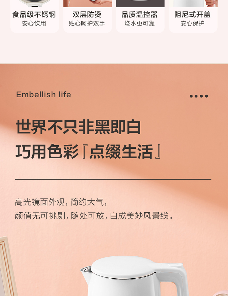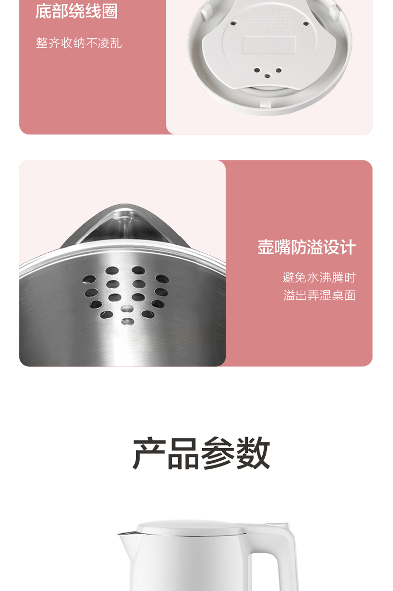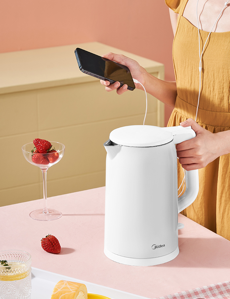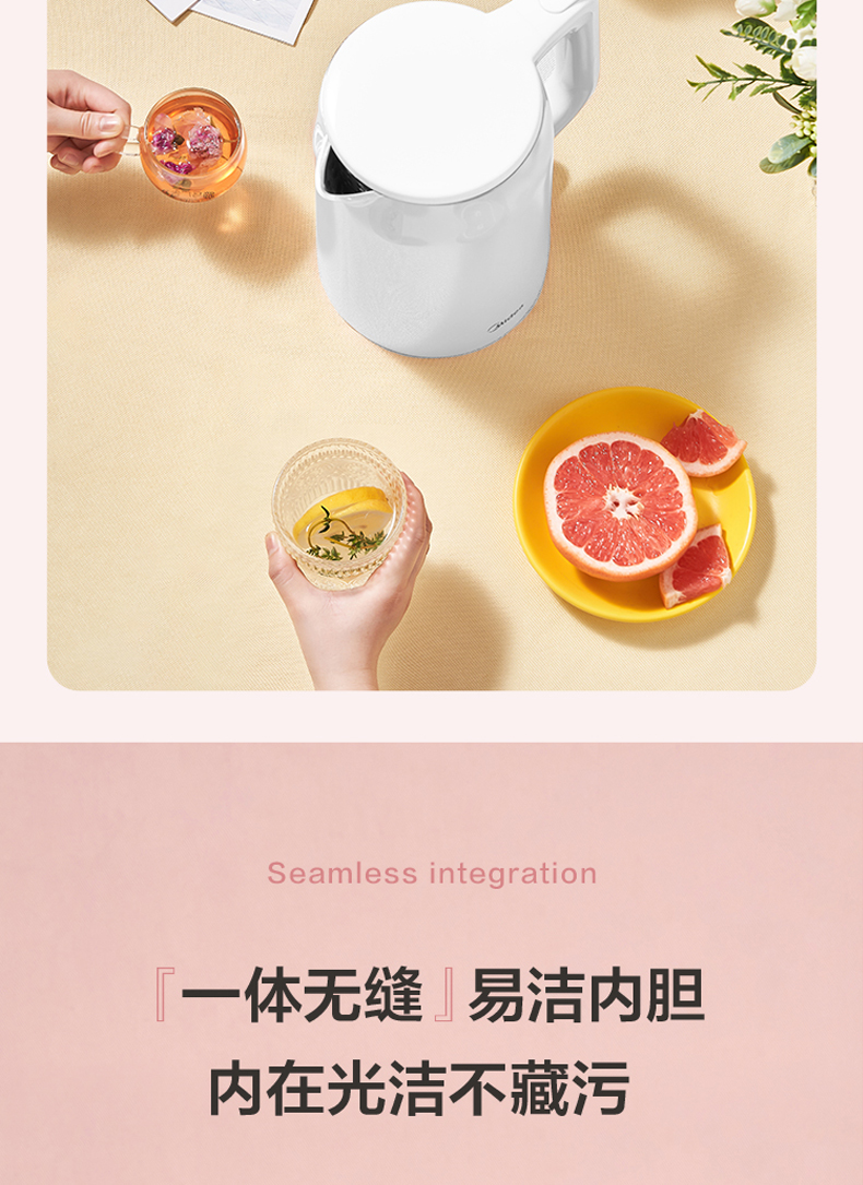 美的 电热水壶 1.7L 304不锈钢烧水壶 AEK1769