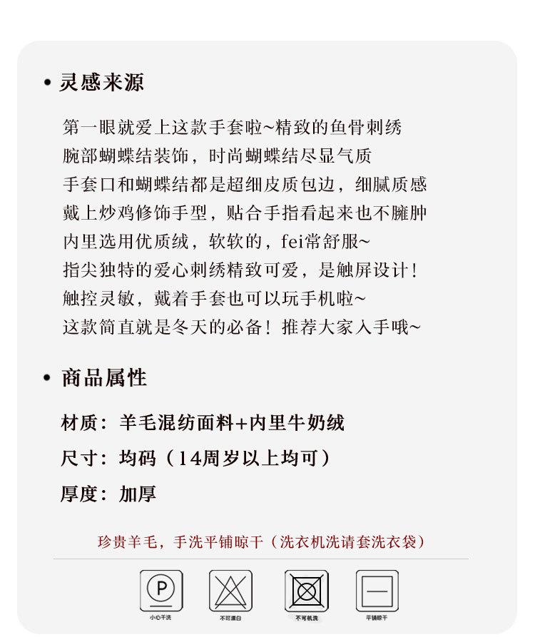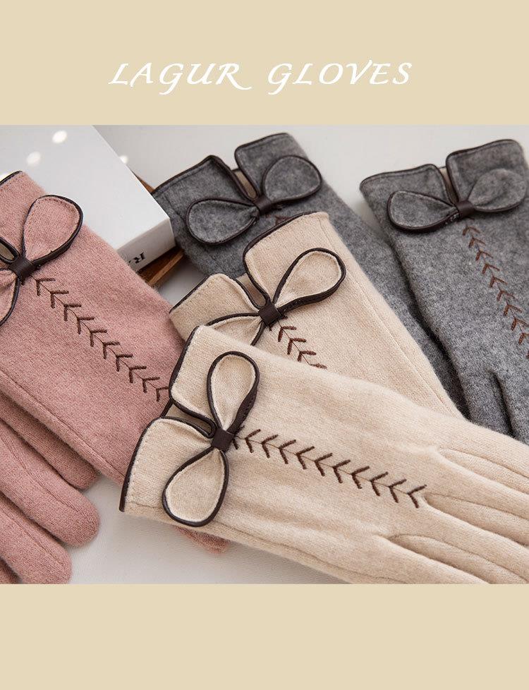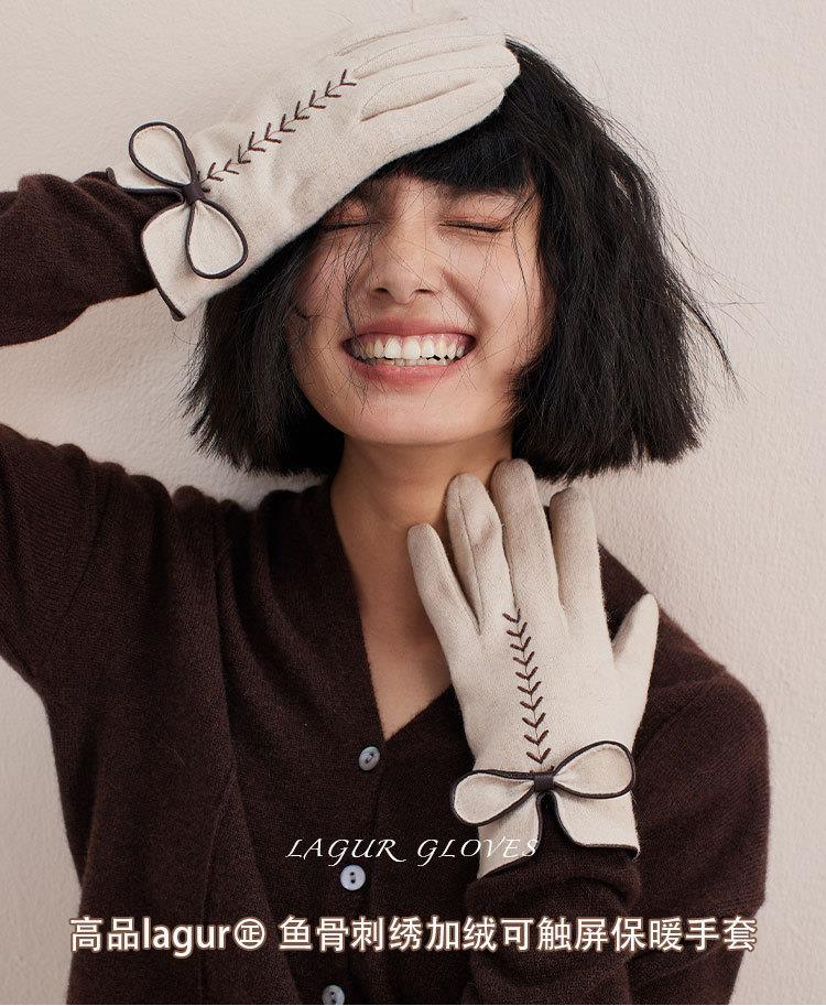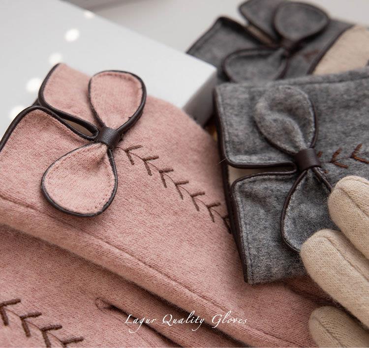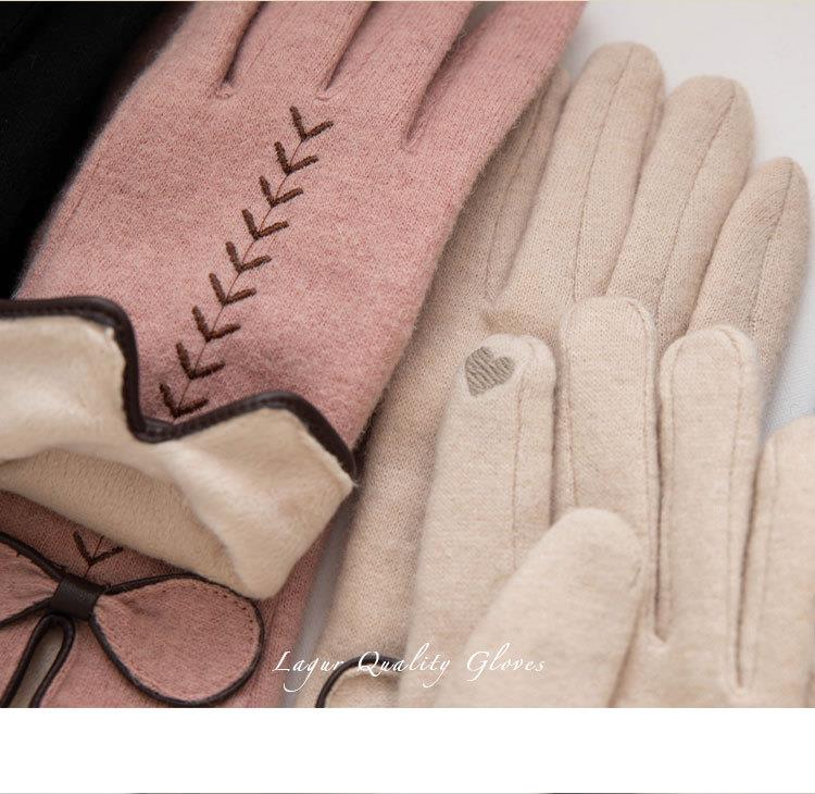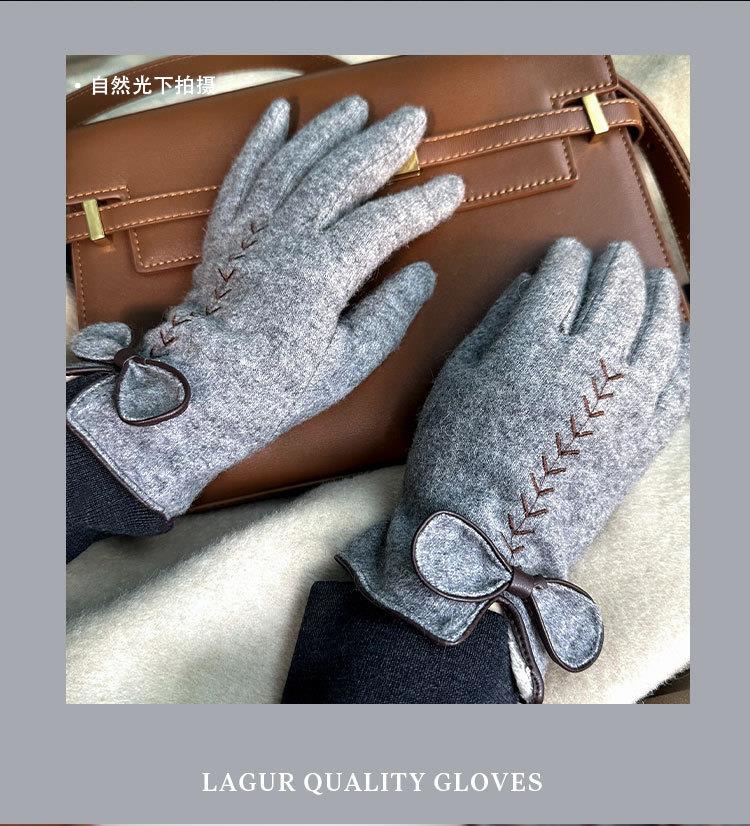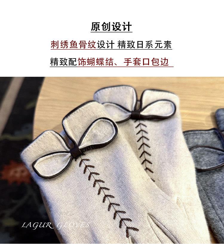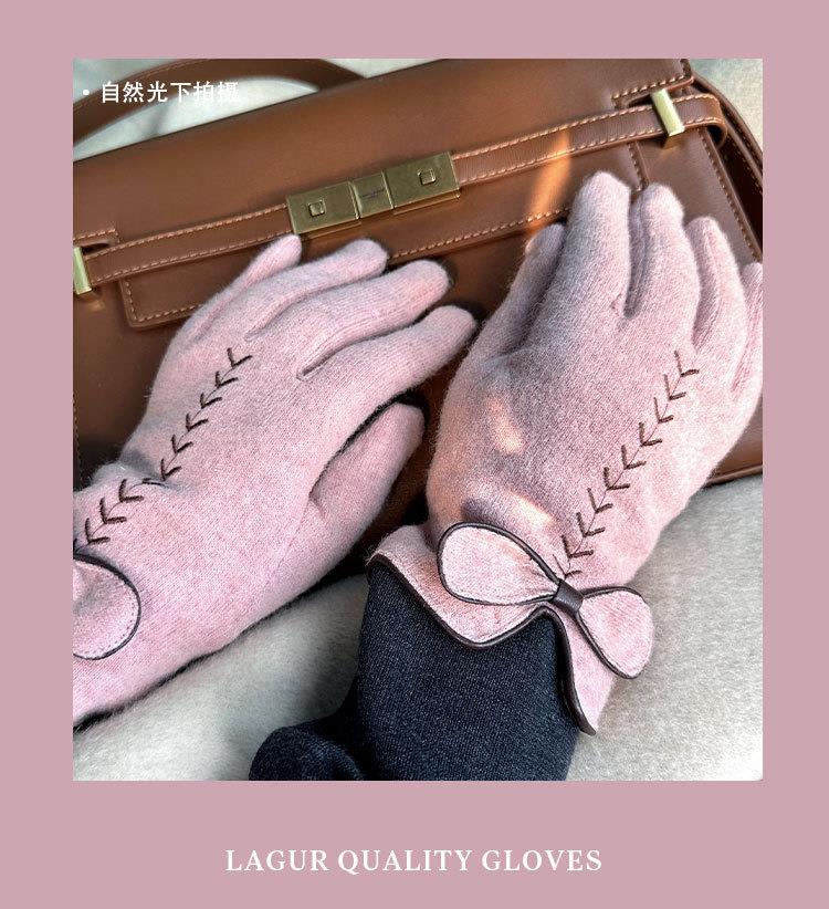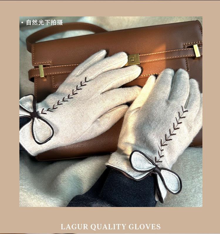 【羊绒羊毛版!加绒可触屏保暖手套蝴蝶结】骑行羊毛分指冬季女氛围感