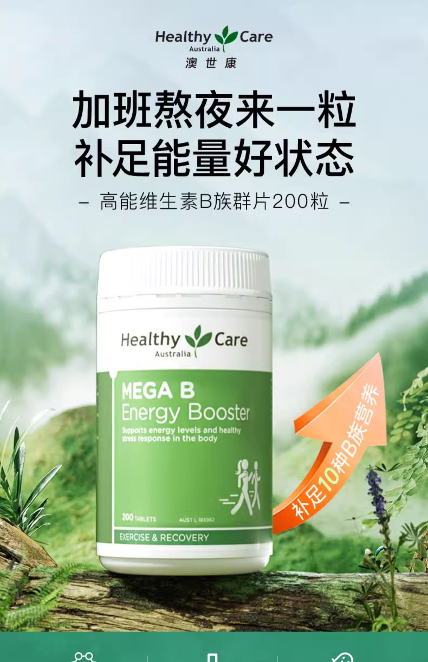 【保税仓】HealthyCare复合维生素B胶囊200粒