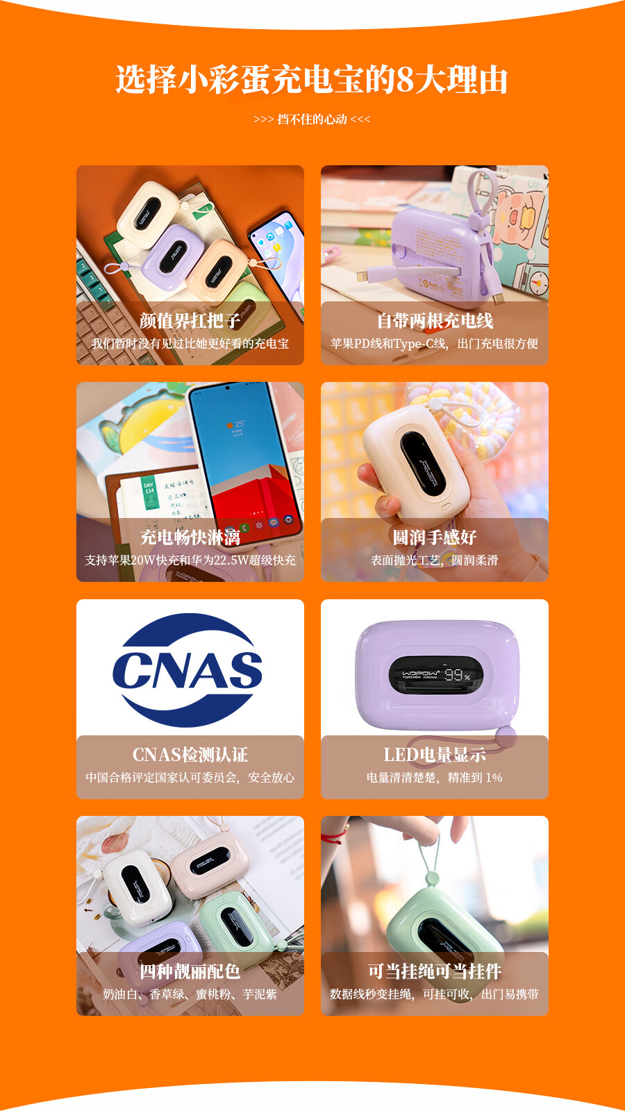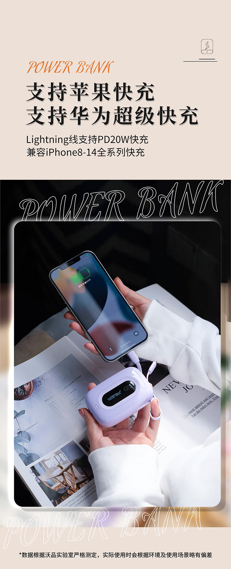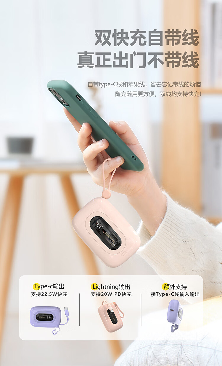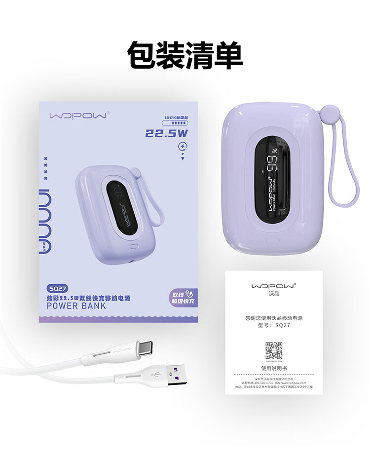 沃品 充电宝 22.5w超级快充自带双线 SQ27 10000mAh