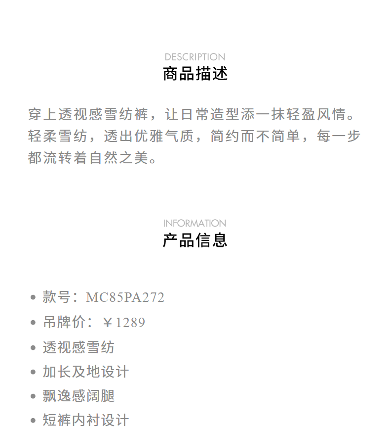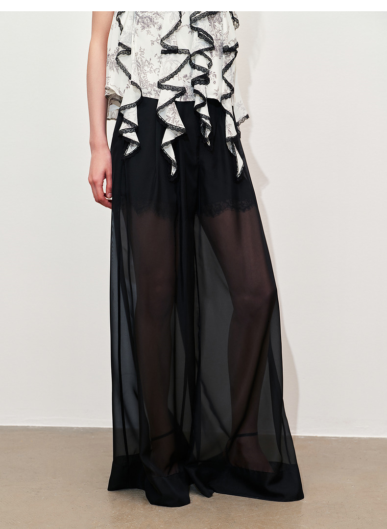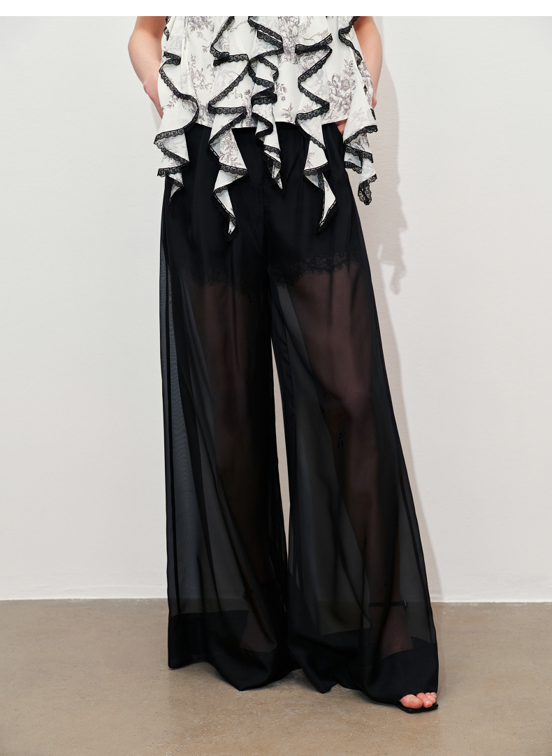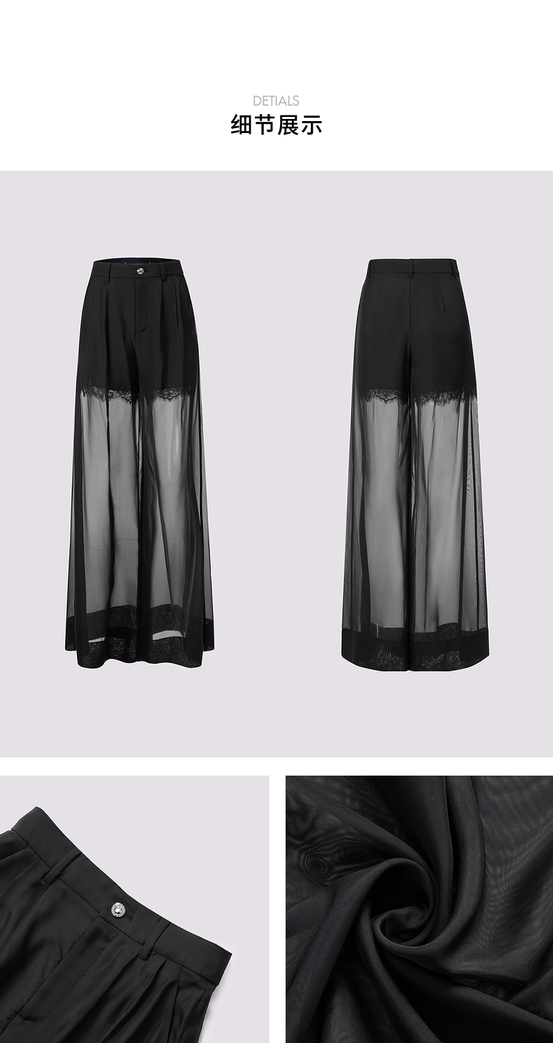 玛克门店发货:MAXRIENY透视感雪纺阔腿裤装2024夏季新款休闲裤女(货号:MC85PA272)