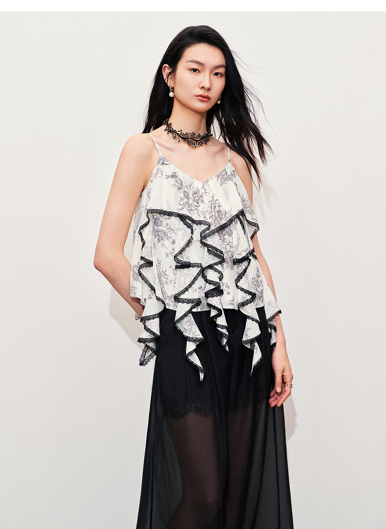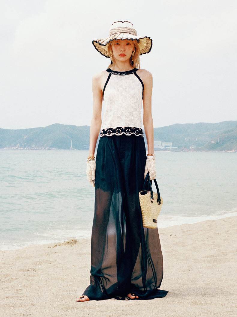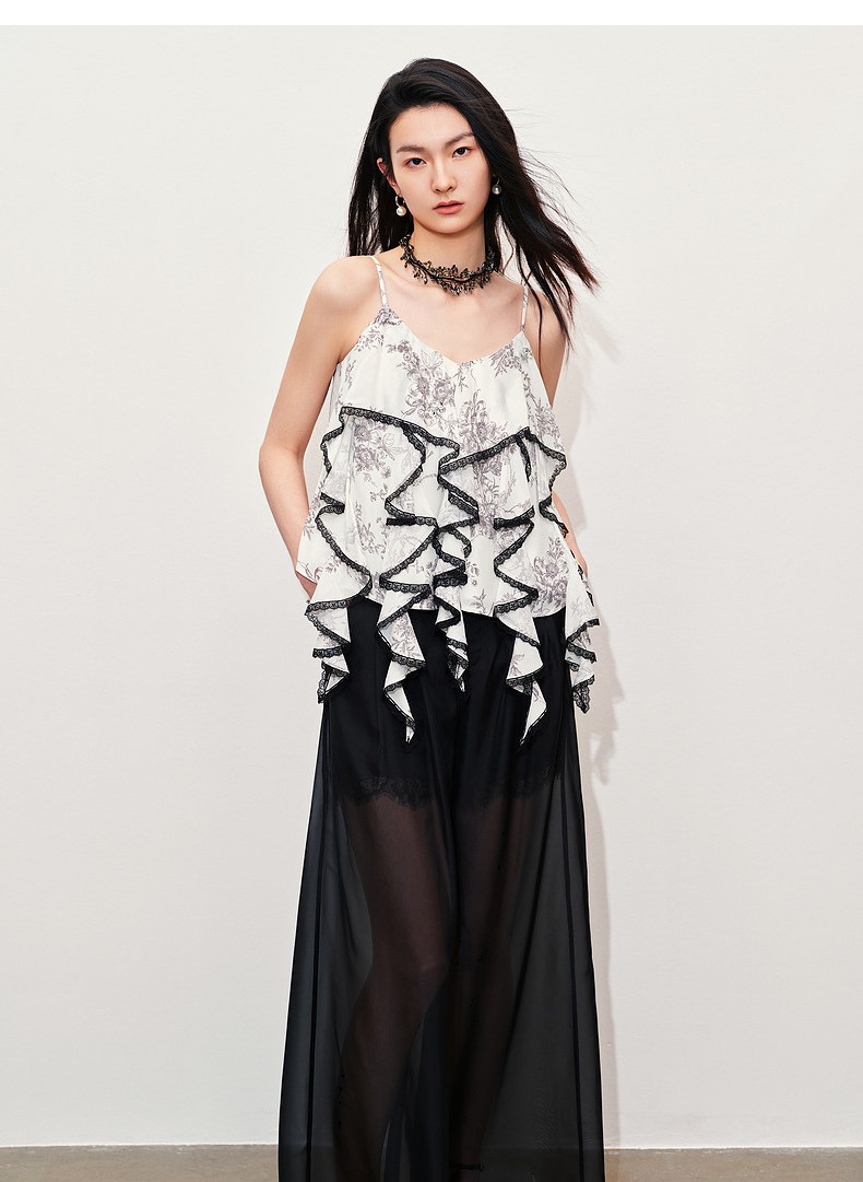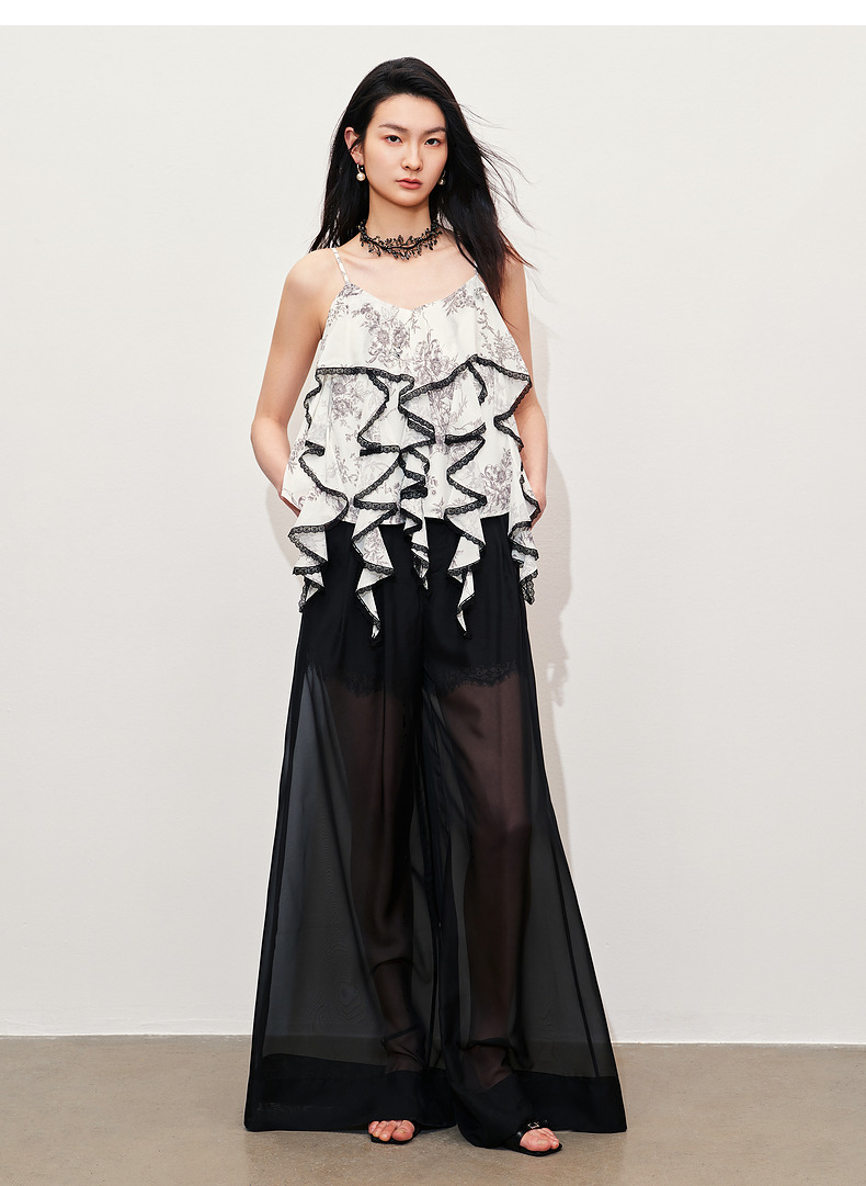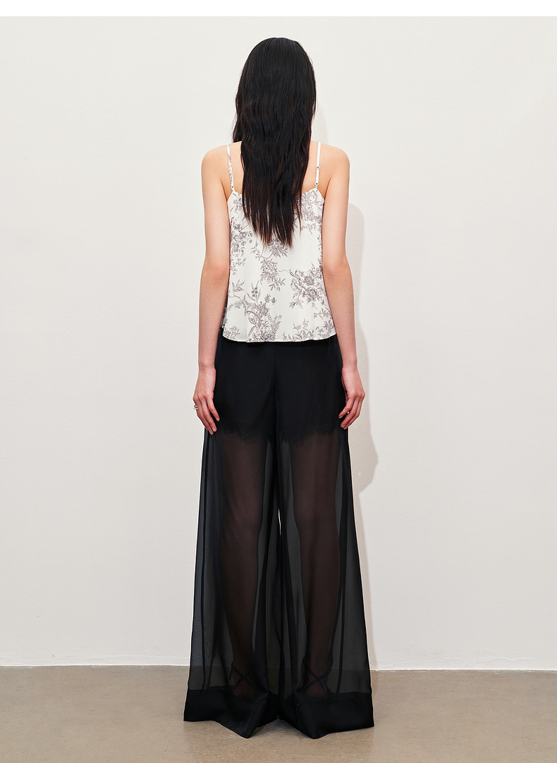 玛克门店发货:MAXRIENY透视感雪纺阔腿裤装2024夏季新款休闲裤女(货号:MC85PA272)