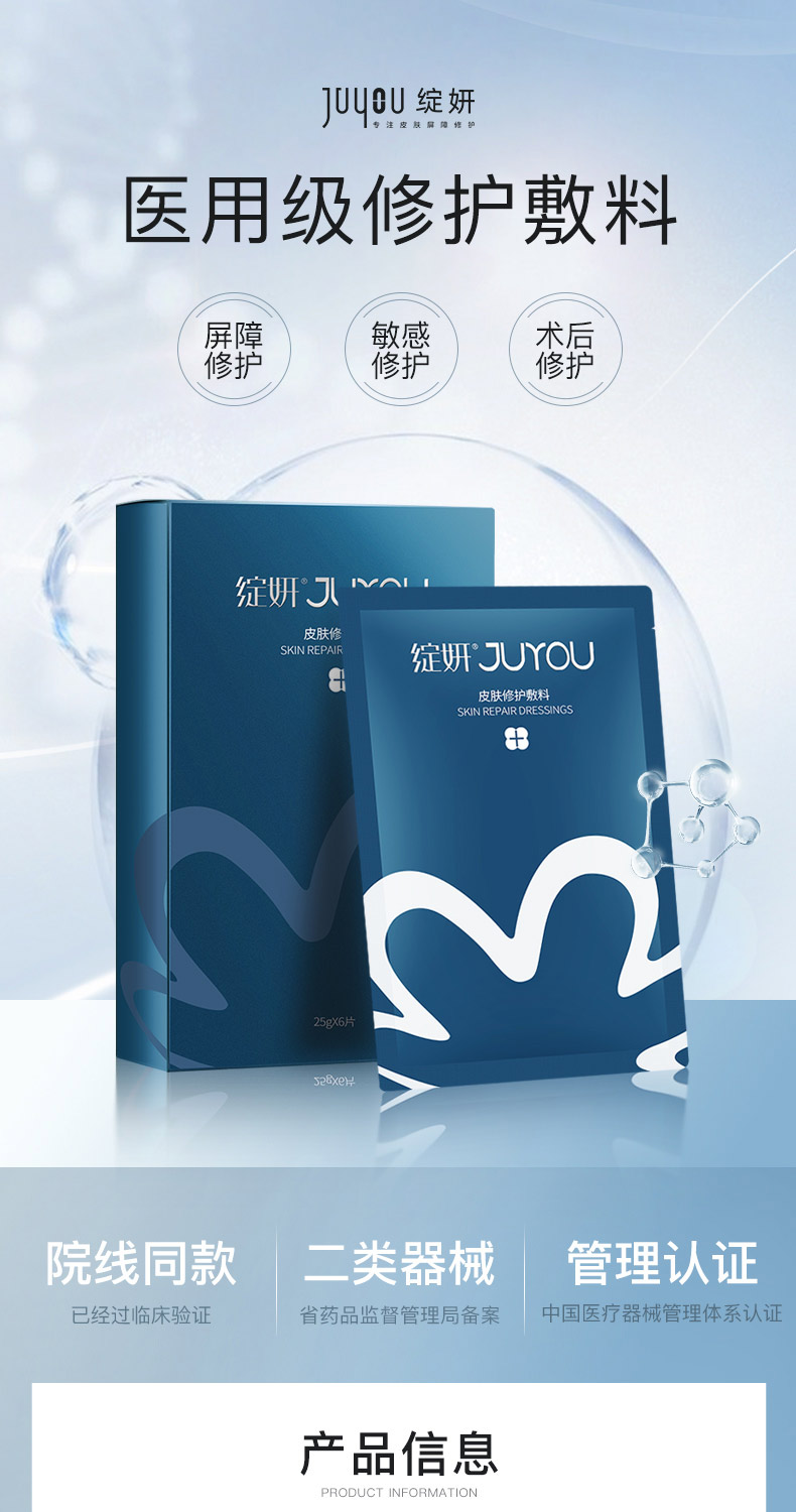 JUYOU绽妍皮肤修护敷料蓝面膜6片