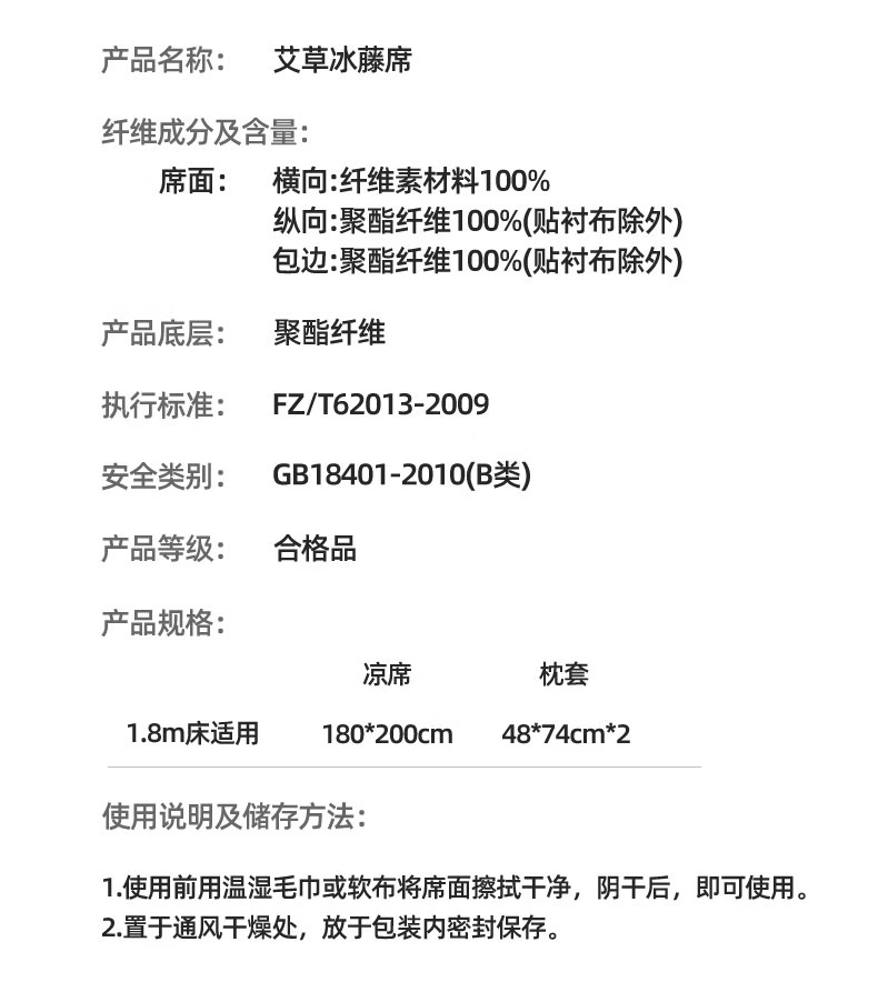 艾草香薰冰藤席凉席 三件套 180cm*200cm