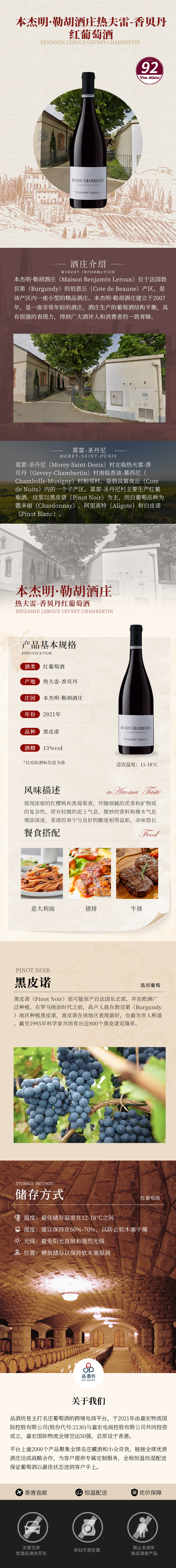 2021 Benjamin Leroux Gevrey Chambertin 本杰明·勒胡酒庄热夫雷-香贝丹红葡萄酒