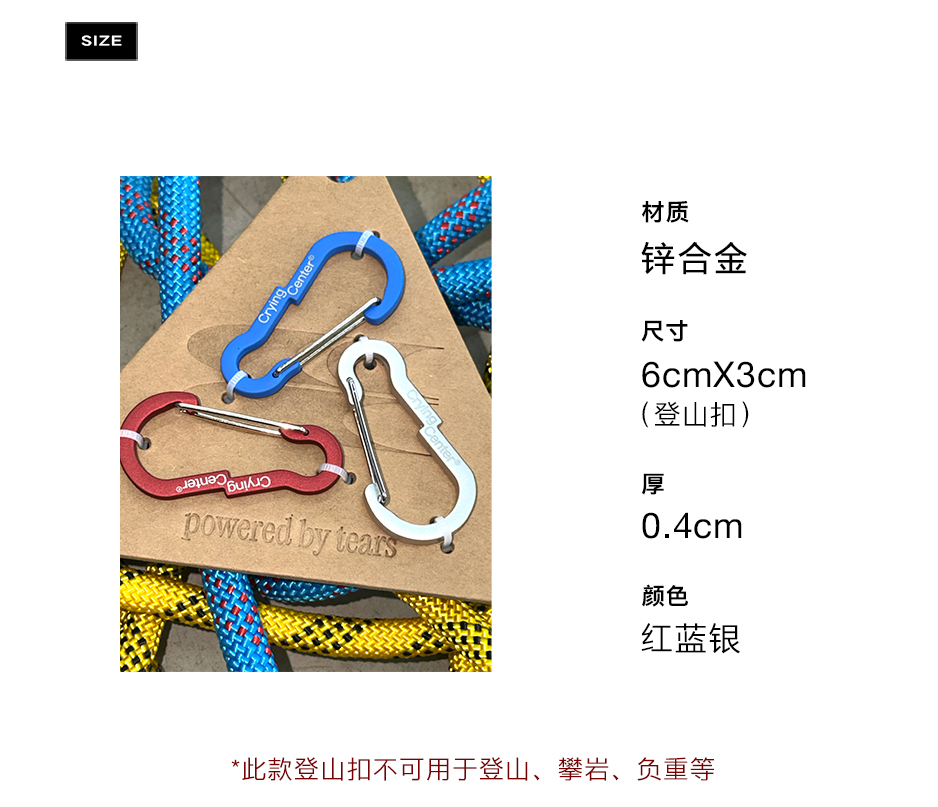 CryingCenter 错位异形三色登山扣 锌合金 钥匙扣背包挂扣