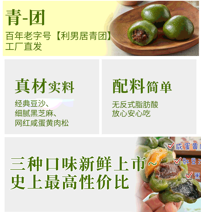 上海老字号 始于1902 【利男居】春日限定青团 配料简单 Q弹软糯 甜而不腻 百年传承 江南味道
