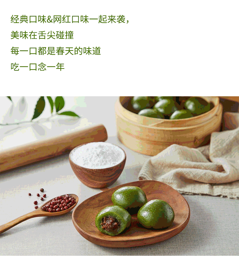 2、油绿如玉,清香扑鼻,口感Q弹软糯,甜而不腻,每一口都是春天的味道,吃一口念一年;