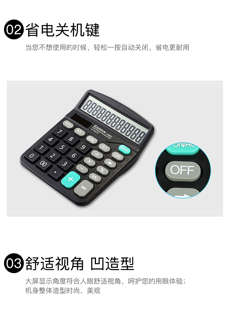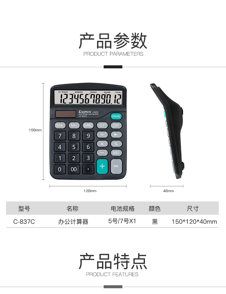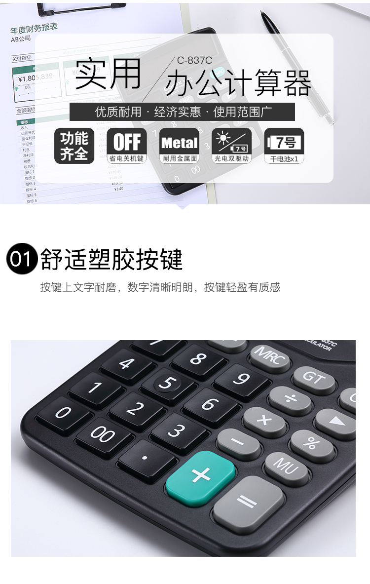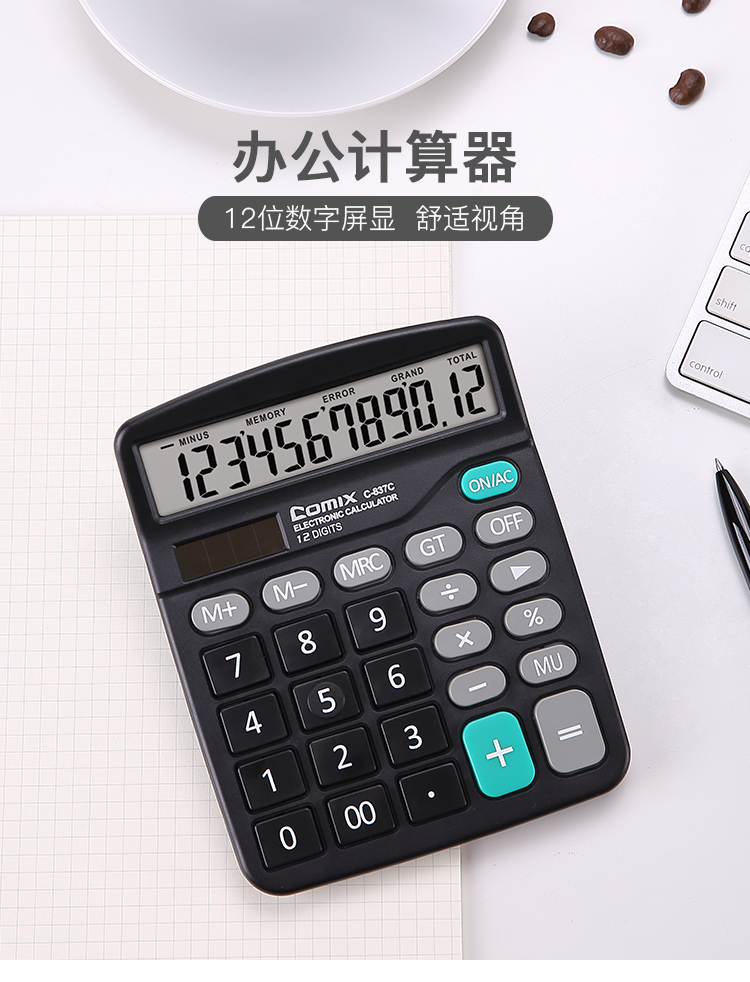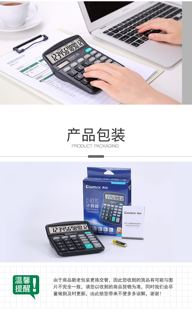 【仅供集采】齐心计算器10个/盒中台通常办公计算用会计专用太阳能带语音财务小号便携双电源计算器按键文具用品C-837C