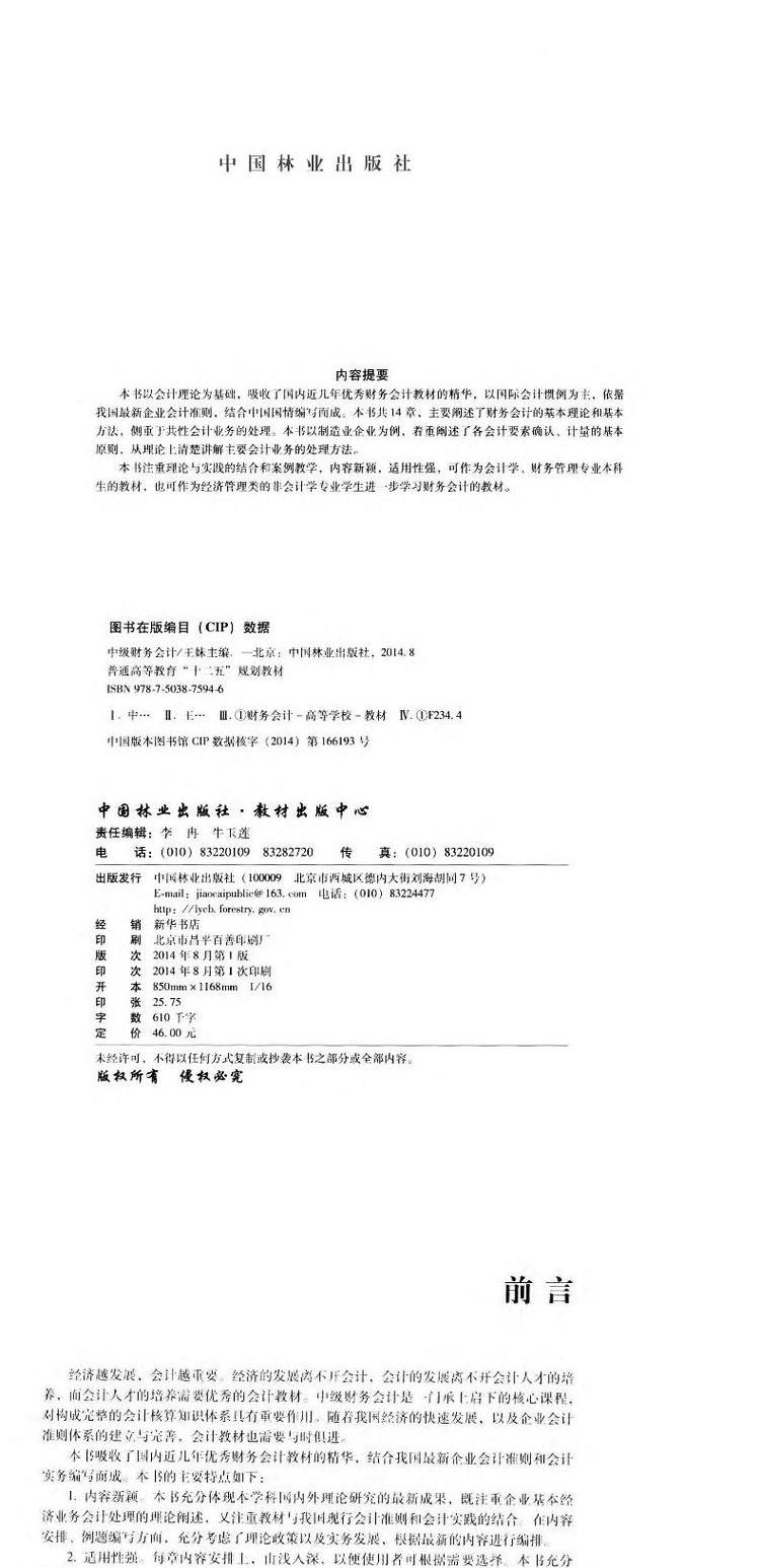 中级财务会计(十二五高等) 中国林业出版社教材 7594