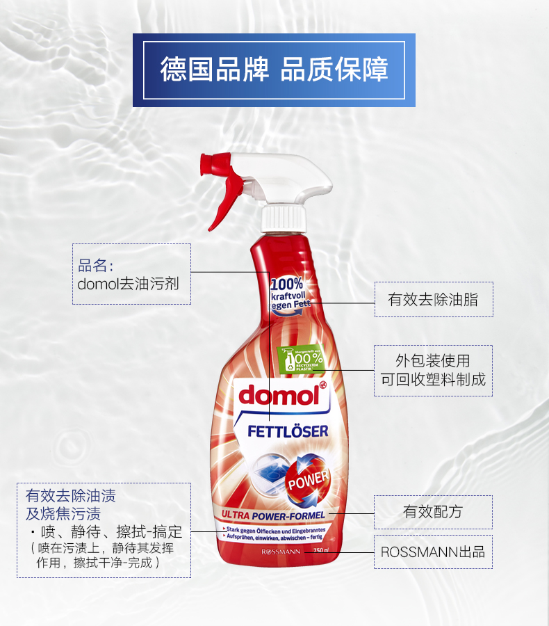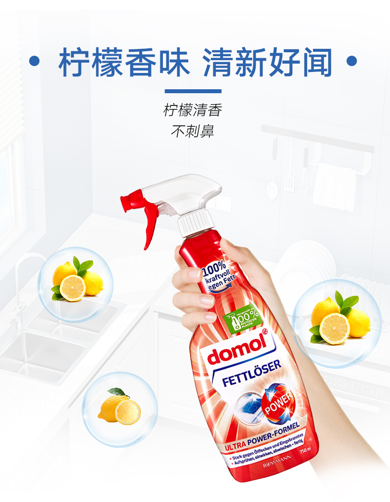 德国进口Domol厨房强力去油污喷雾油烟机清洗剂 750ml/瓶