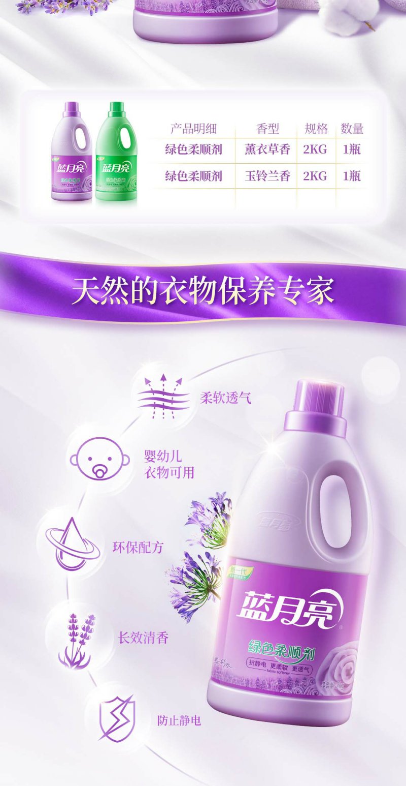 蓝月亮 柔顺剂 持久留香 衣物护理剂 薰衣草2kg+玉玲兰2kg
