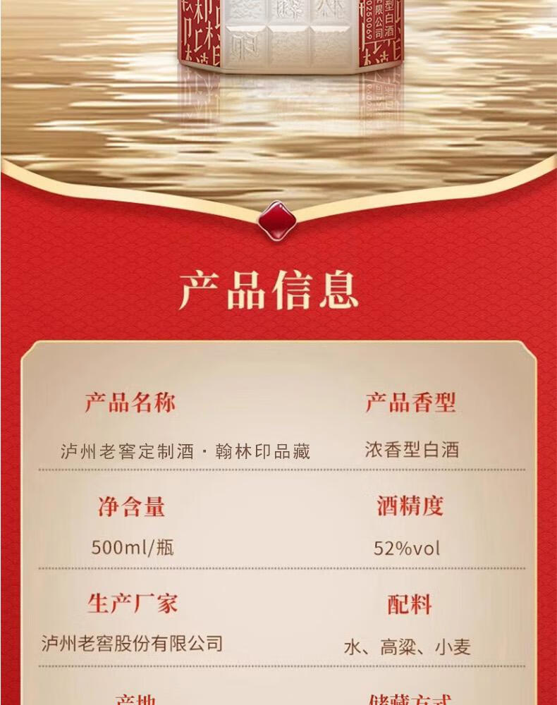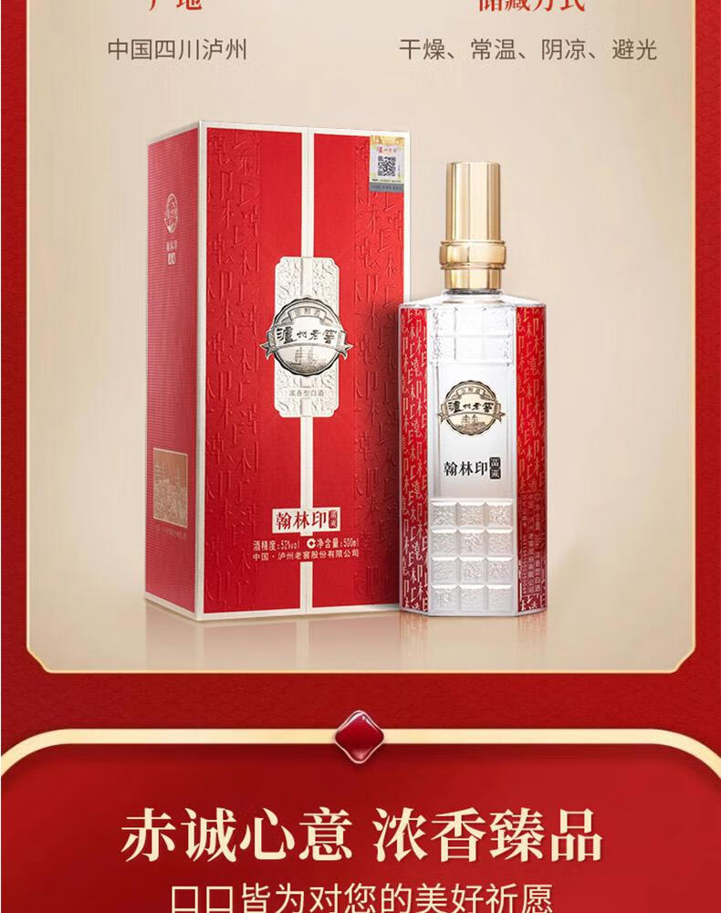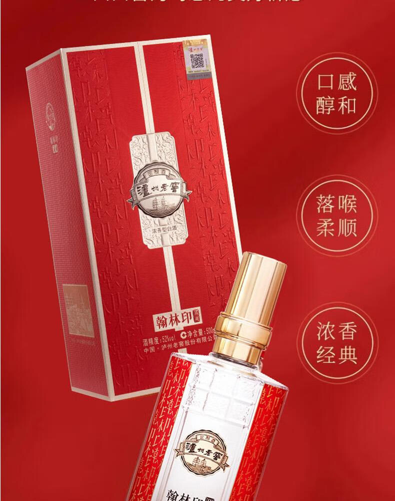 【拍6送1】泸州老窖 翰林印 品藏 浓香型 52度 500ml
