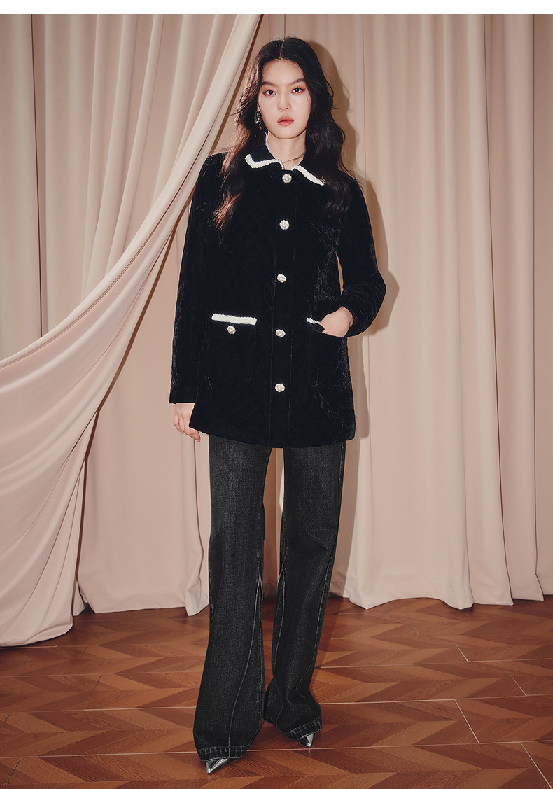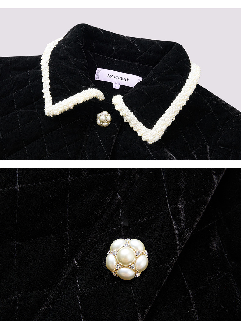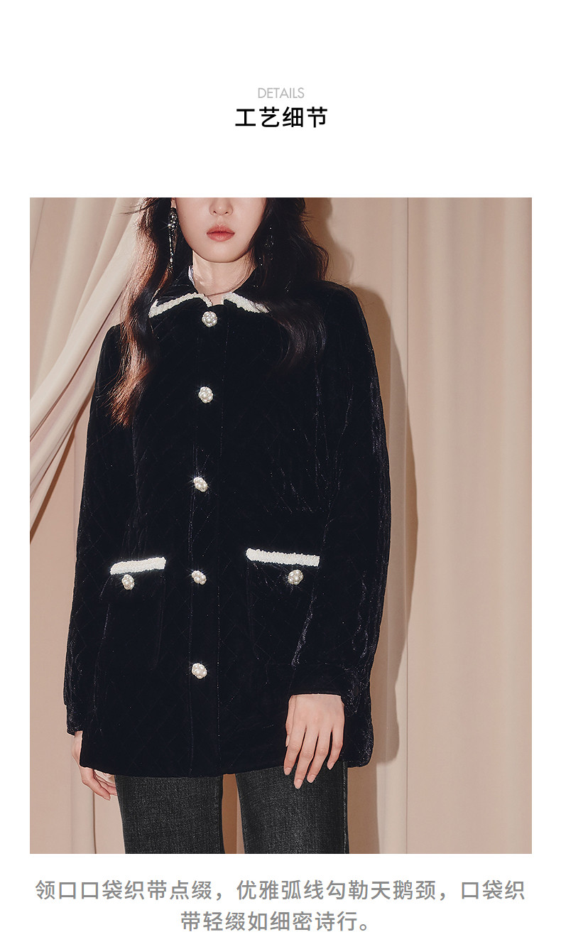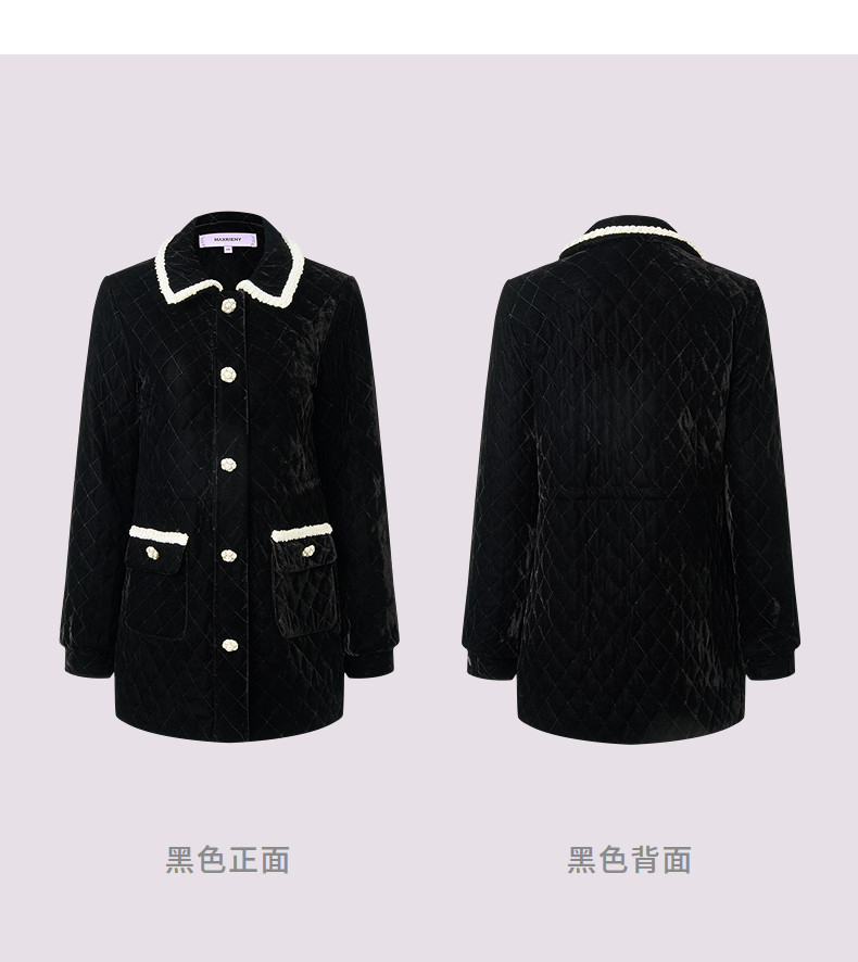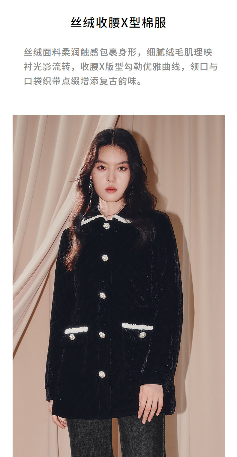 天虹发货:MAXRIENY法式复古丝绒收腰X型外套赫本风25冬款小香风气质感棉服(货号:MS86CP505)