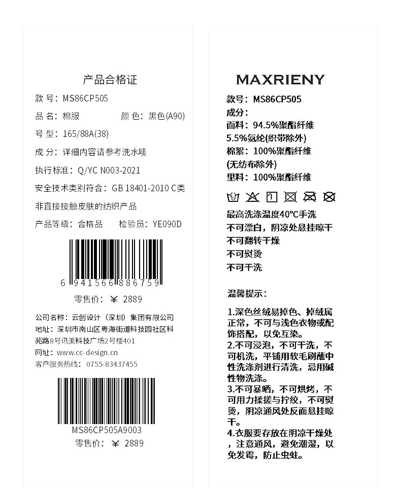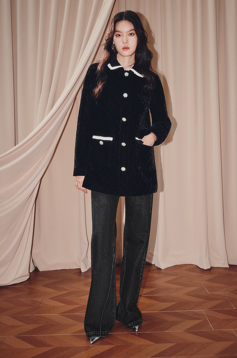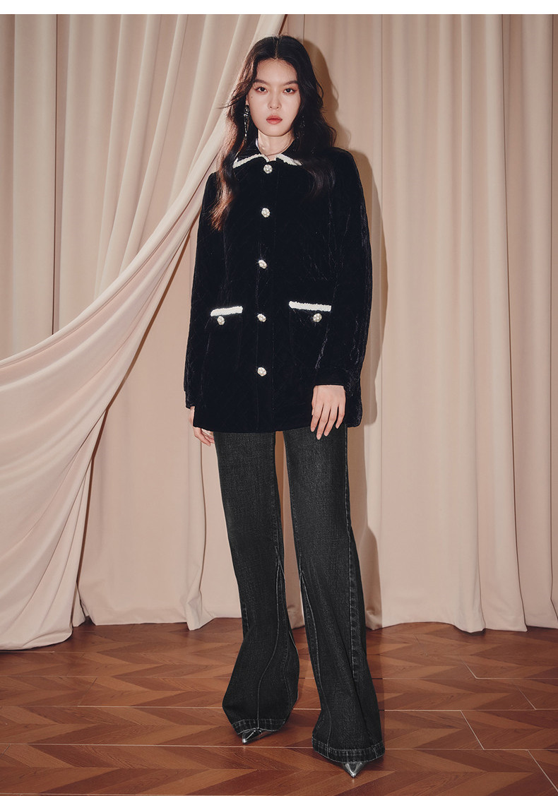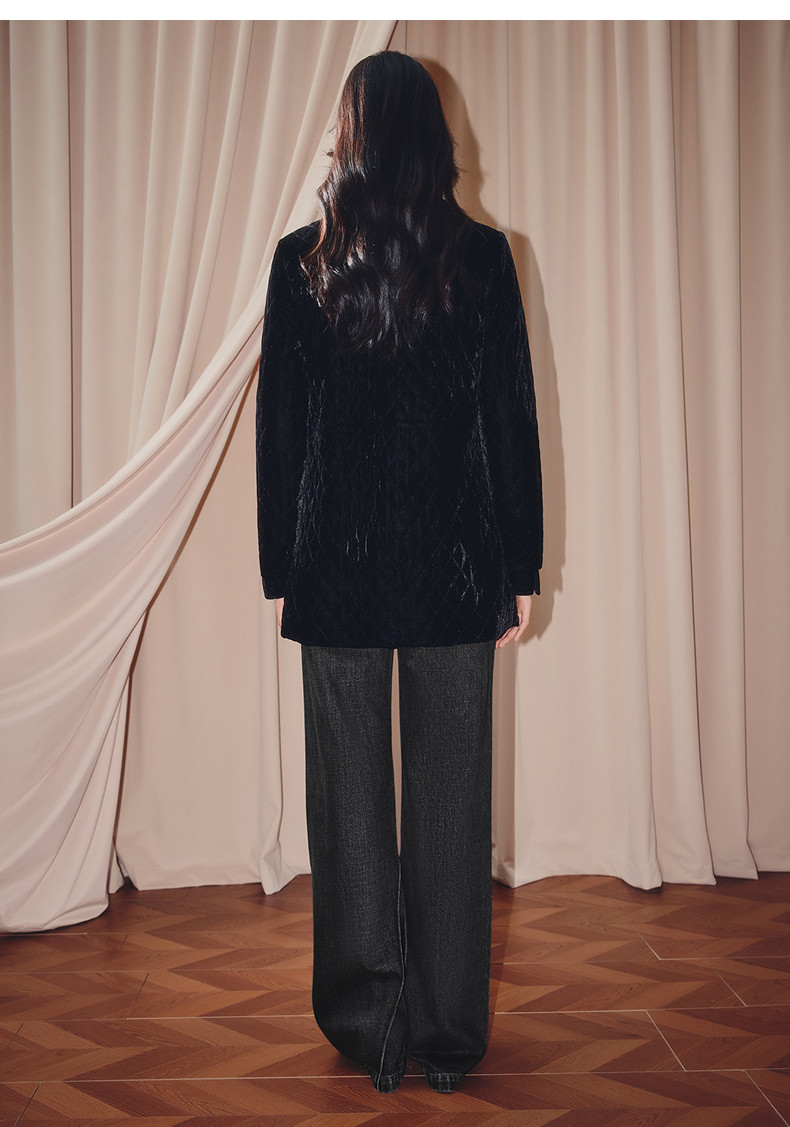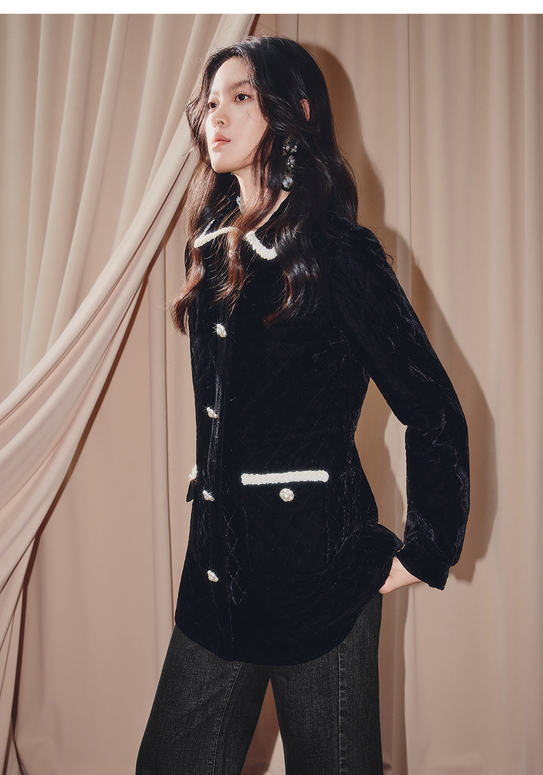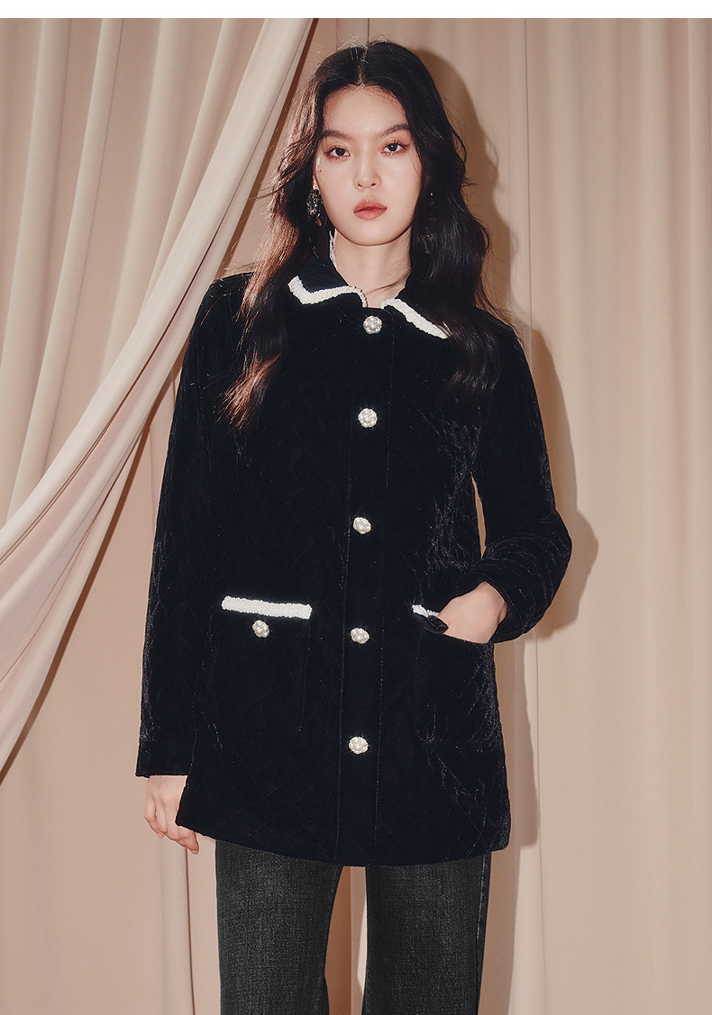 天虹发货:MAXRIENY法式复古丝绒收腰X型外套赫本风25冬款小香风气质感棉服(货号:MS86CP505)