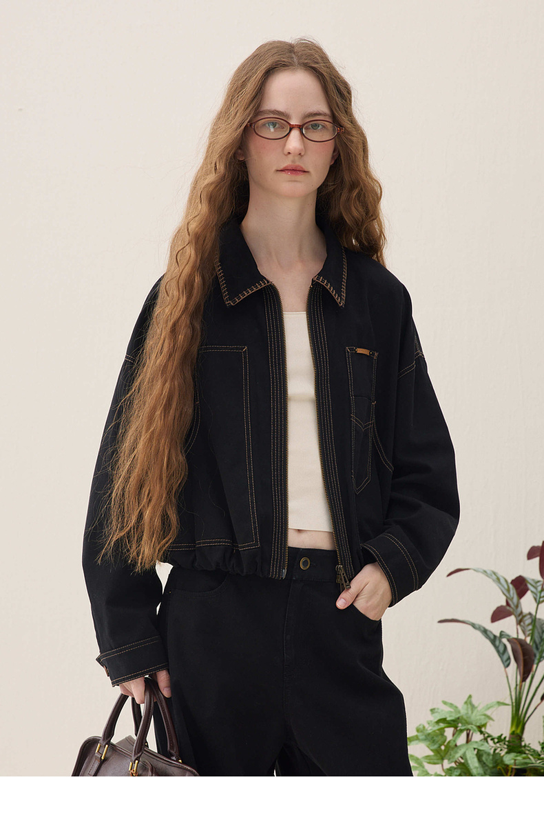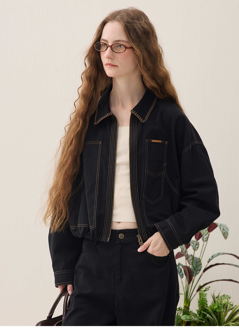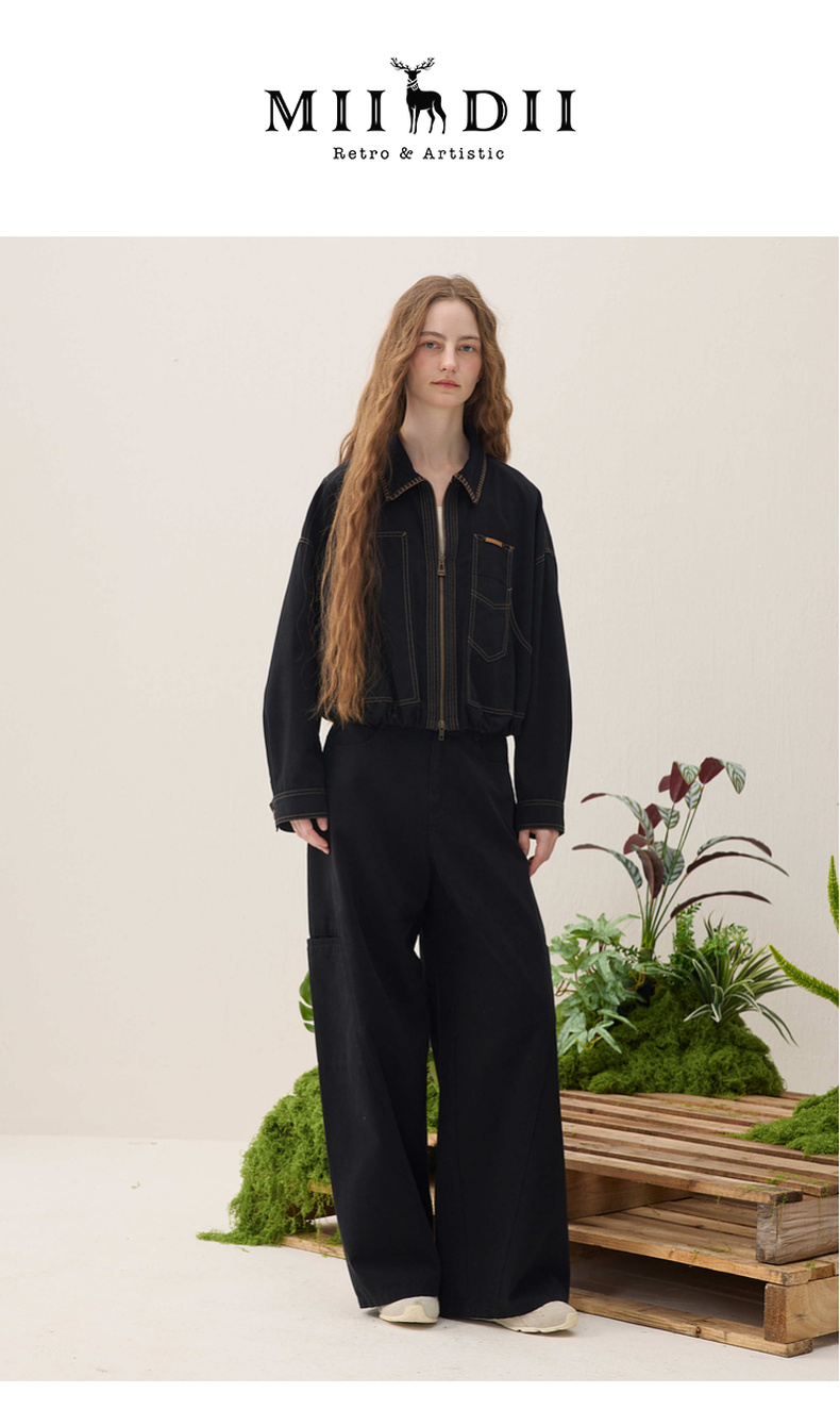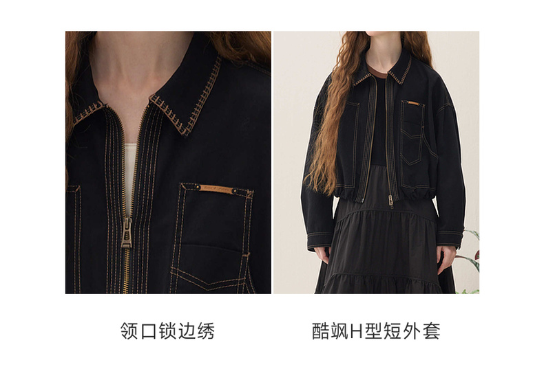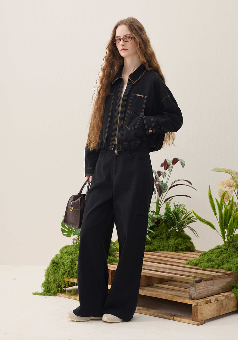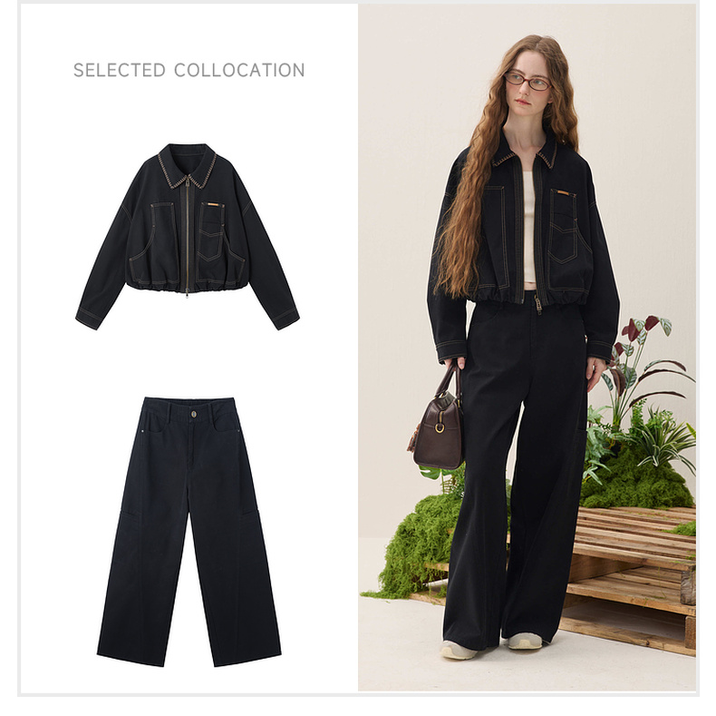 谜底牛仔外套长袖2026年春季新品黑色百搭大口袋酷感女261MW0228