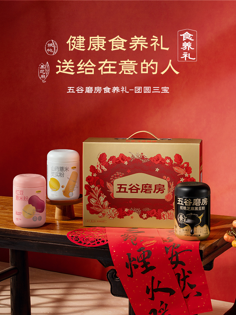 【五谷磨房团圆三宝】五谷磨房-新-团圆三宝礼盒1638g!黑芝麻核桃组合,经典养生,全家共享!