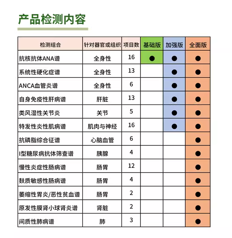 欧盟未一 自免抗体检测套餐 自身免疫抗体检测与筛查 自身免疫疾病早筛