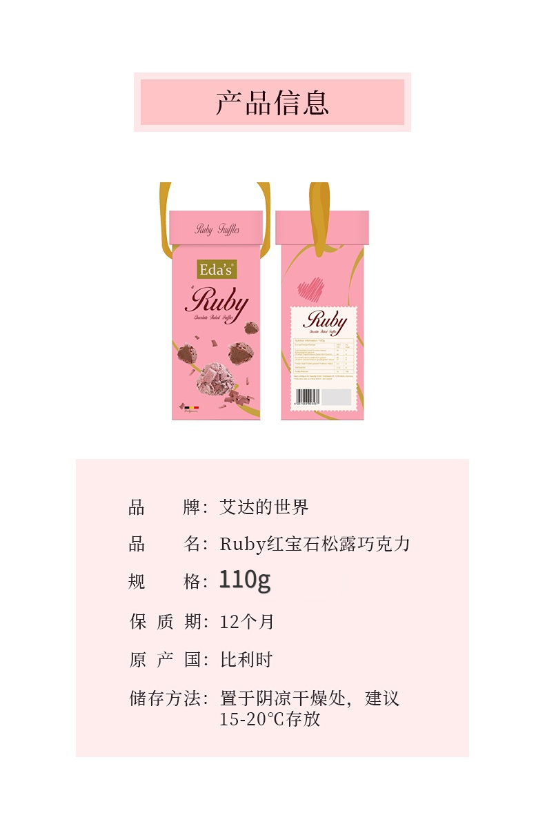 艾达的世界红宝石松露形软心巧克力110g/盒