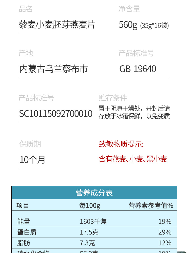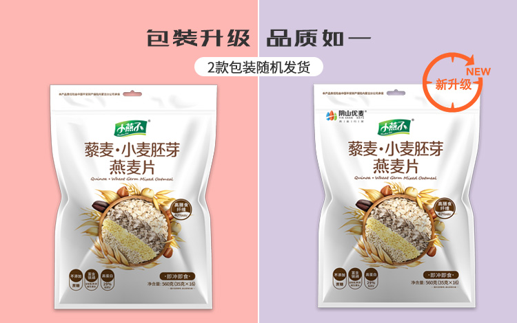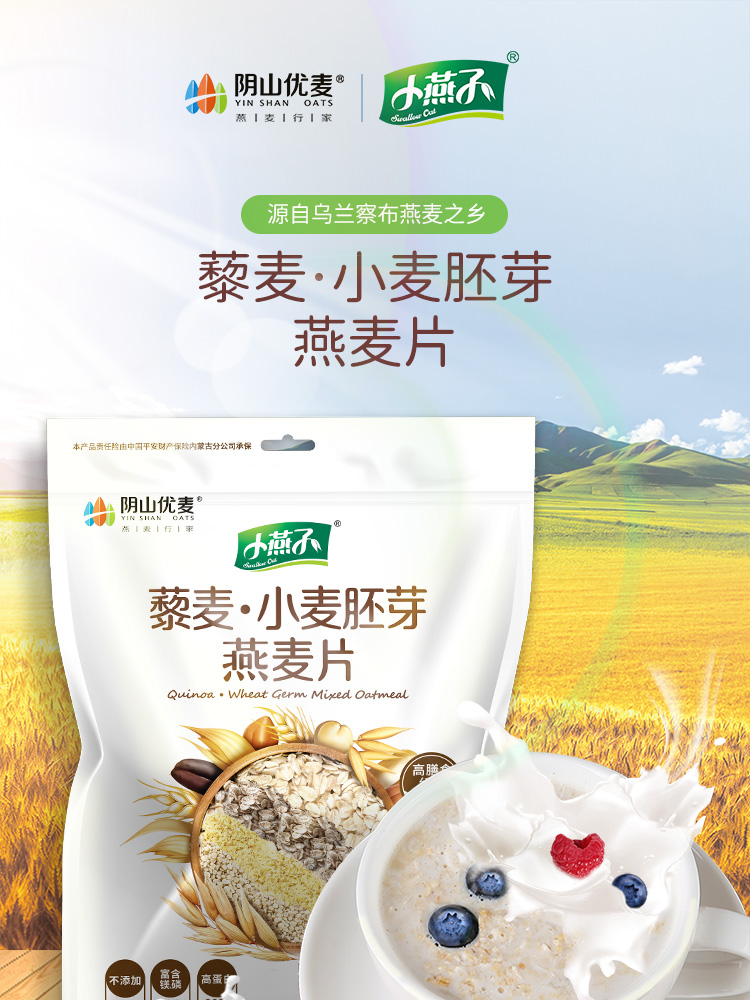 【阴山优麦·藜麦小麦胚芽燕麦片】高膳食纤维560g(35g*16袋) 代餐饱腹 高营养
