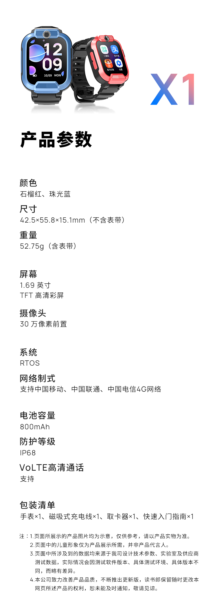 读书郎X1儿童电话手表防水4G全网通小学生智能定位儿童手表