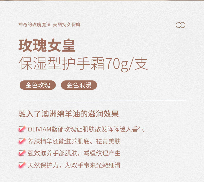 澳莉维亚 娇柔绵羊油保湿手霜(玫瑰味)70ml