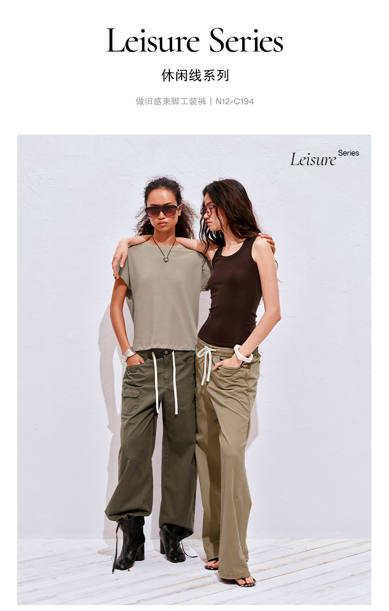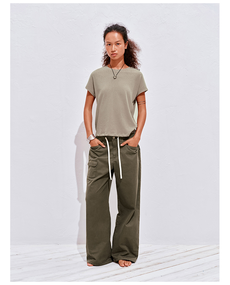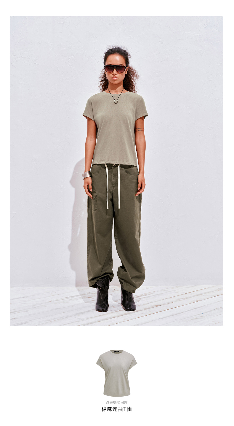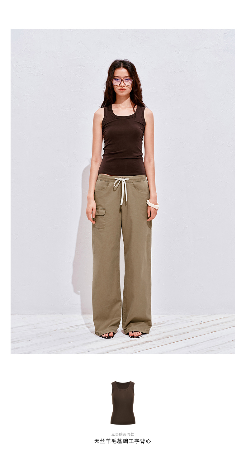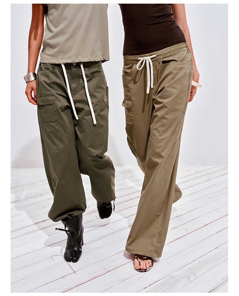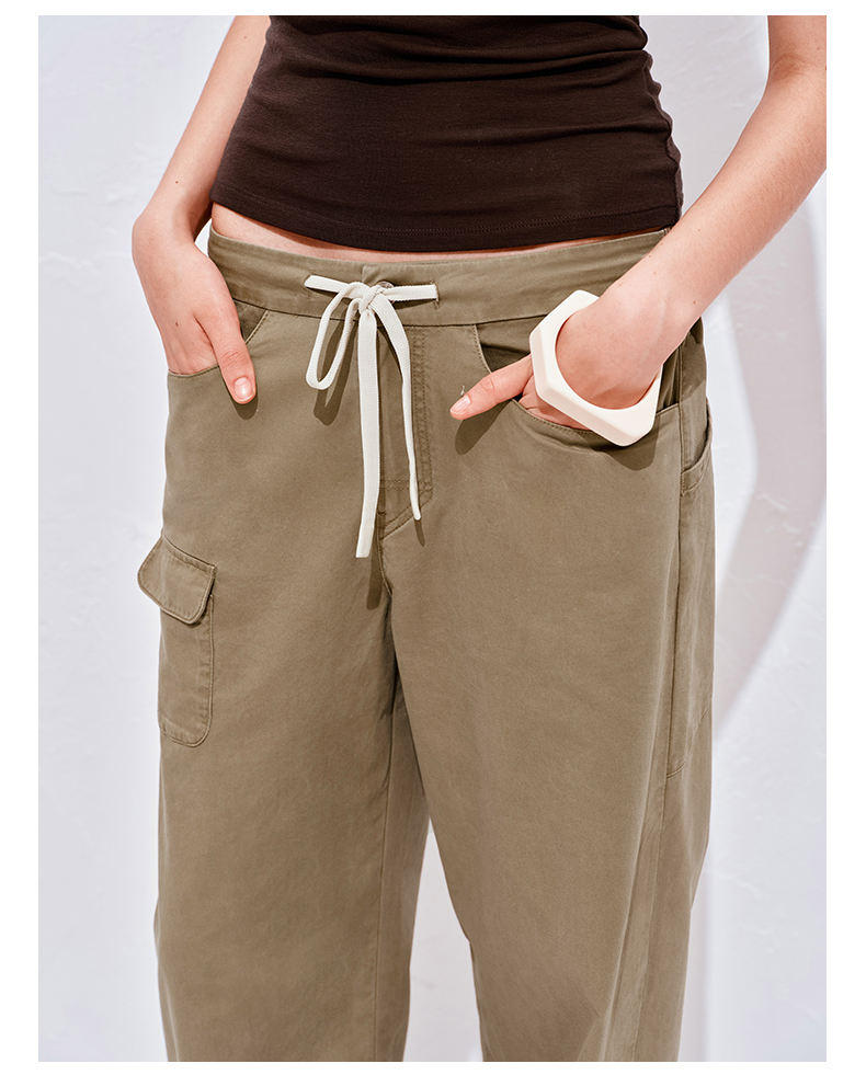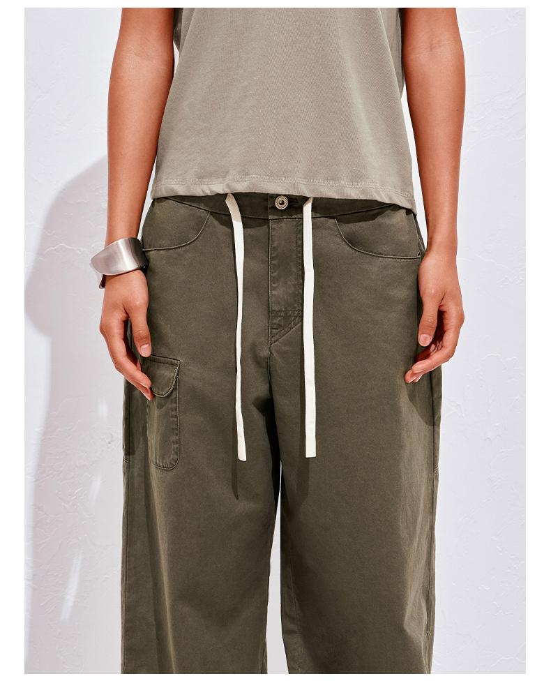 NUTH宽松直筒水洗做旧感可调节抽绳束脚工装裤女