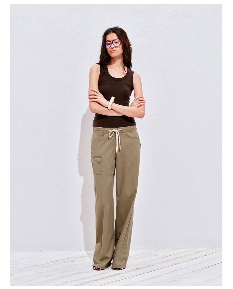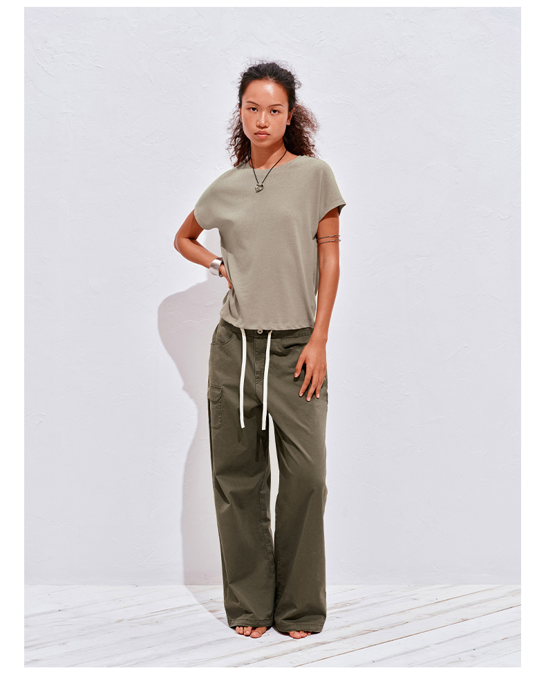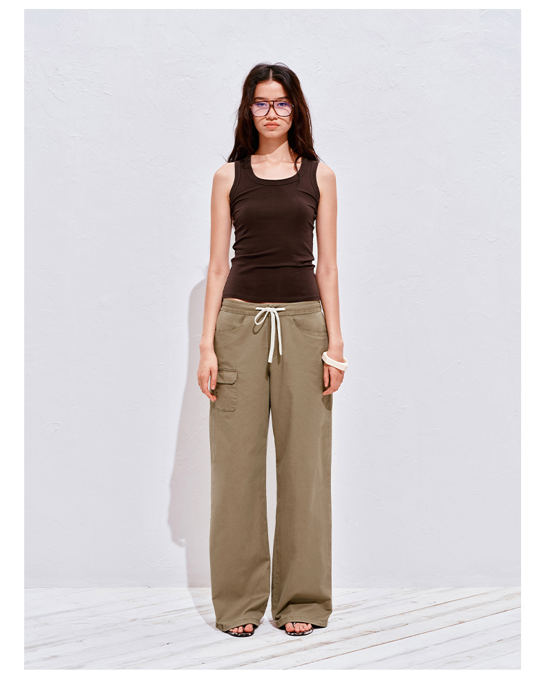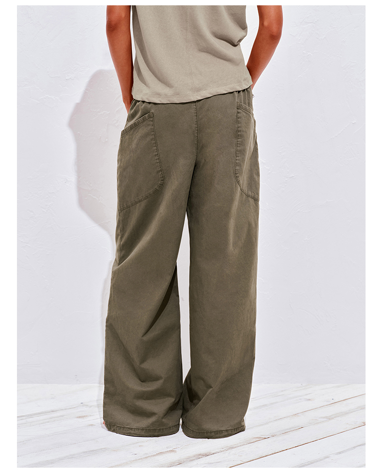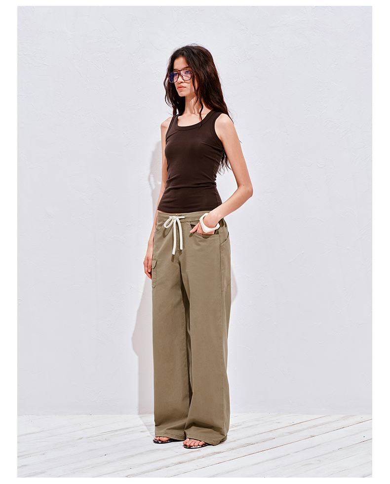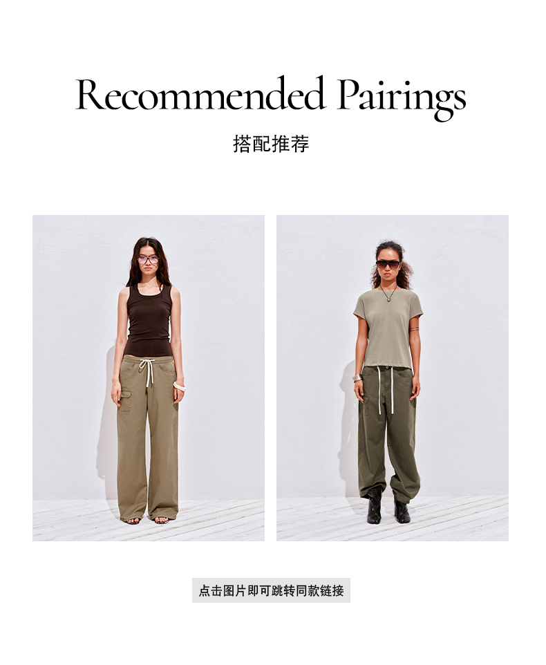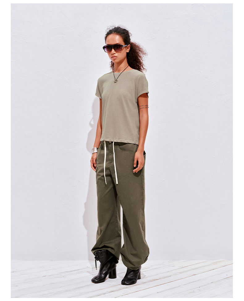 NUTH宽松直筒水洗做旧感可调节抽绳束脚工装裤女