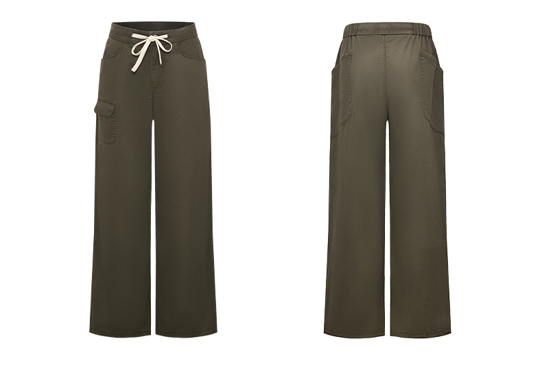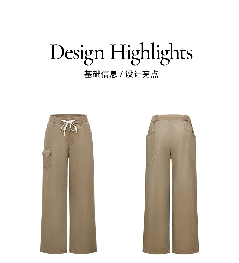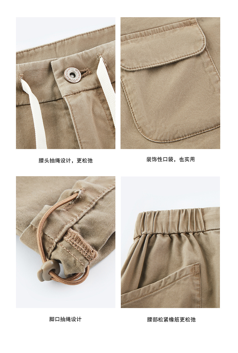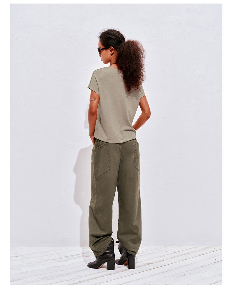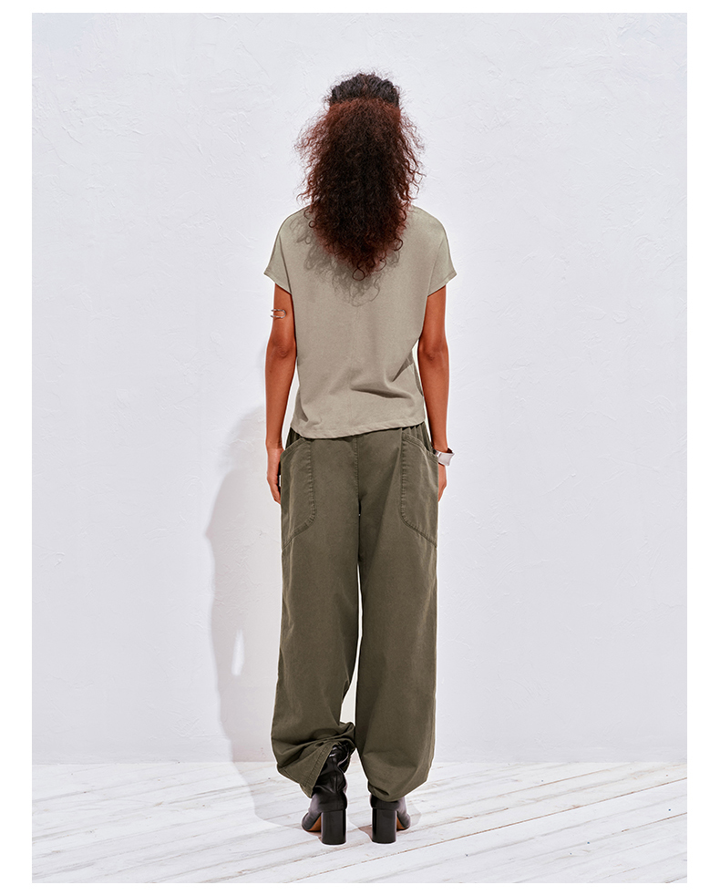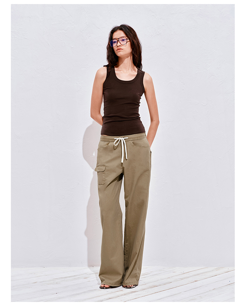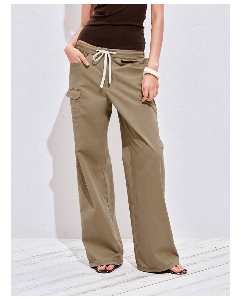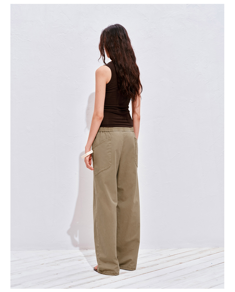 NUTH宽松直筒水洗做旧感可调节抽绳束脚工装裤女