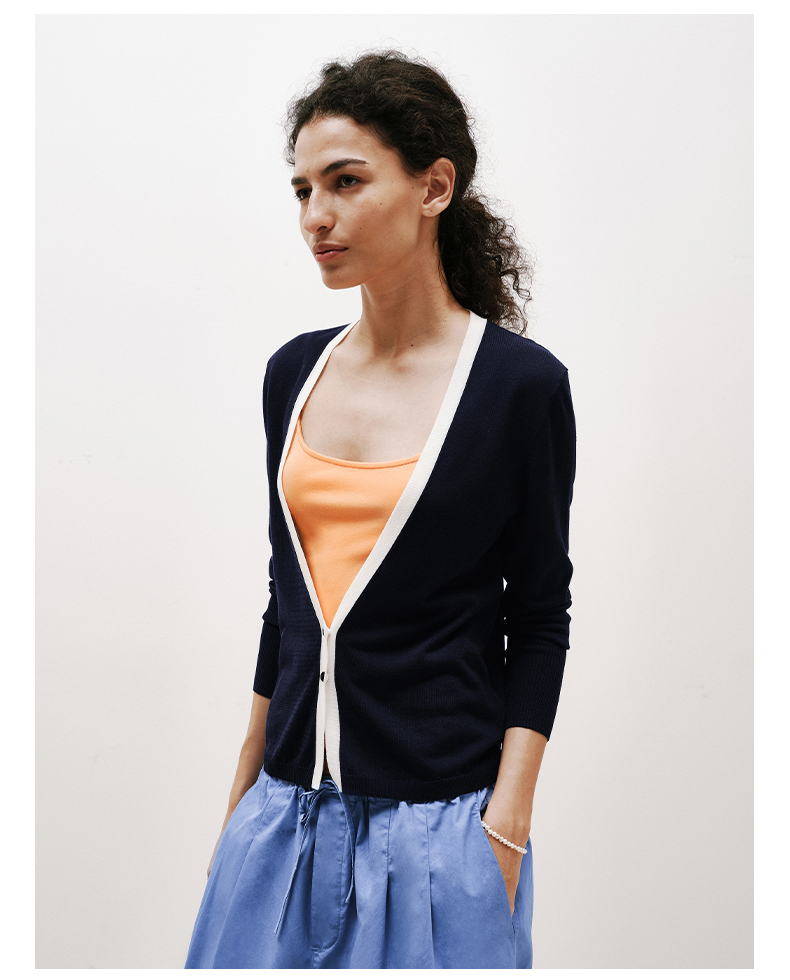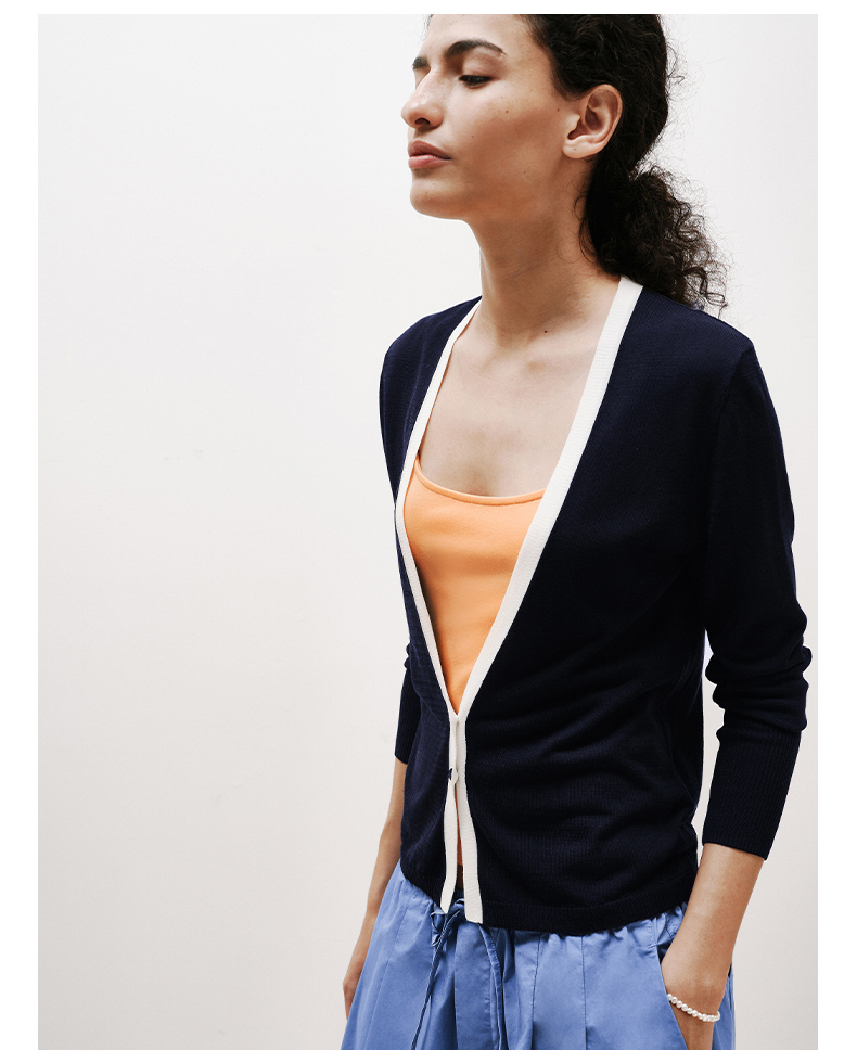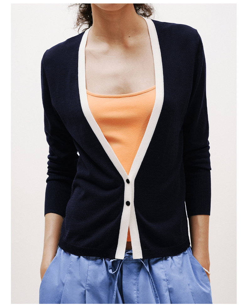 NUTH 薄款撞色修身长袖外搭空调开衫