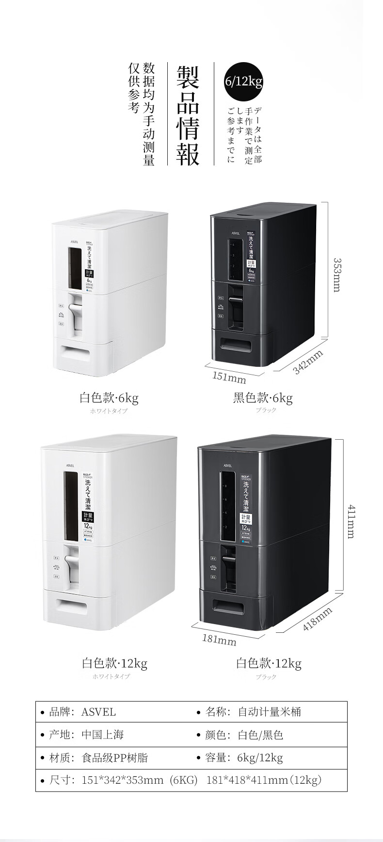 阿司倍鹭(ASVEL)新款自动出米米缸储米箱 S计量米缸-多规格