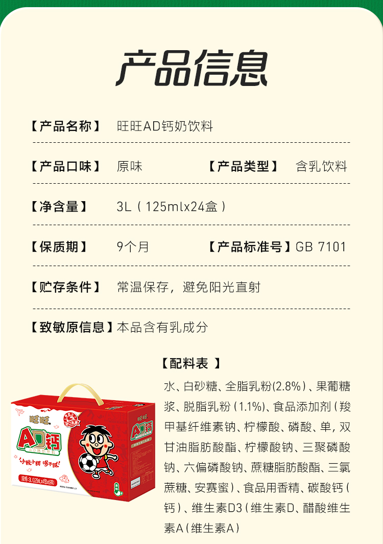 旺旺AD钙奶饮料整提125ml*24
