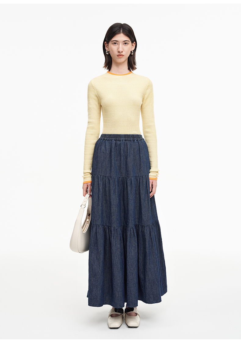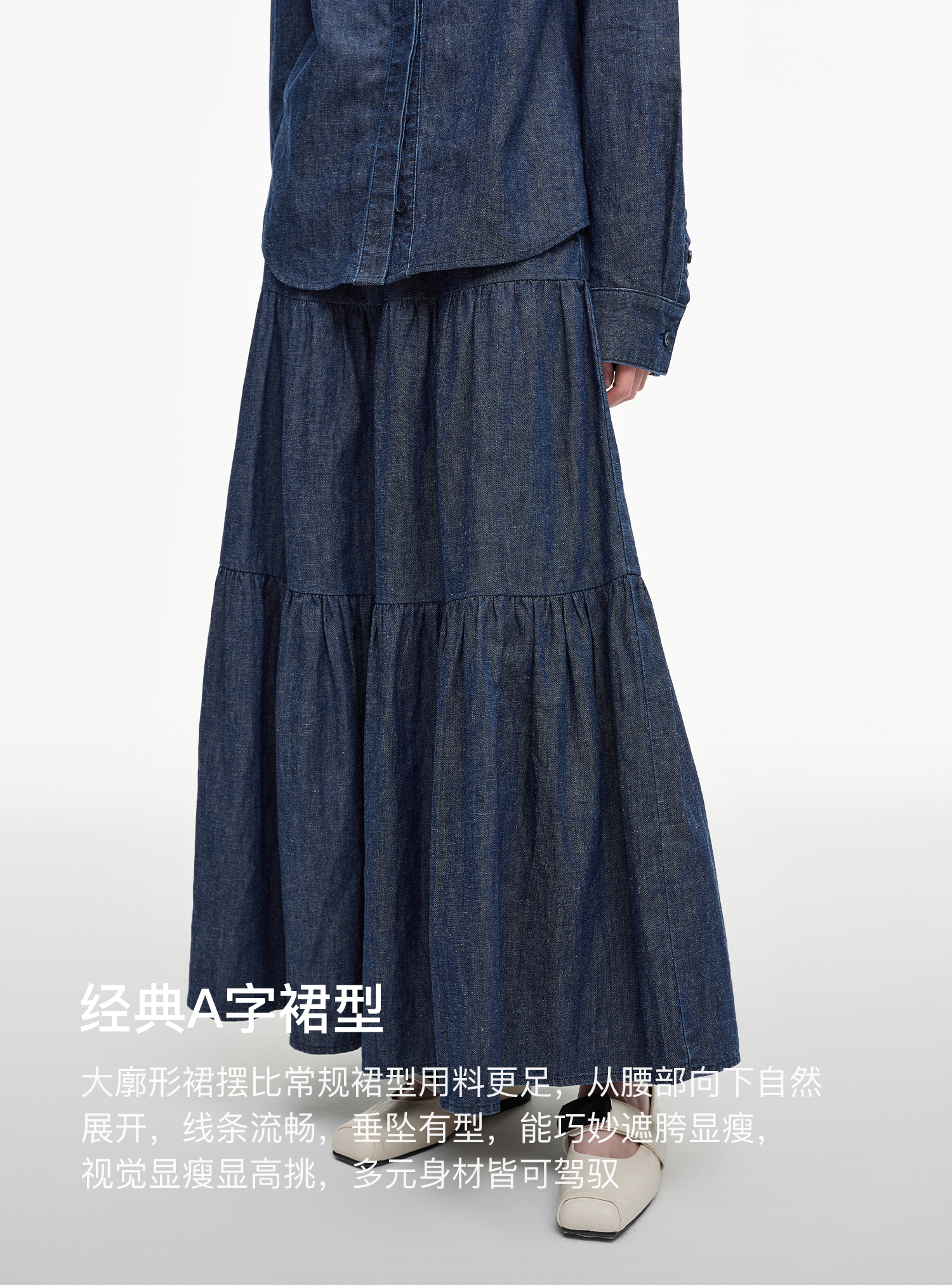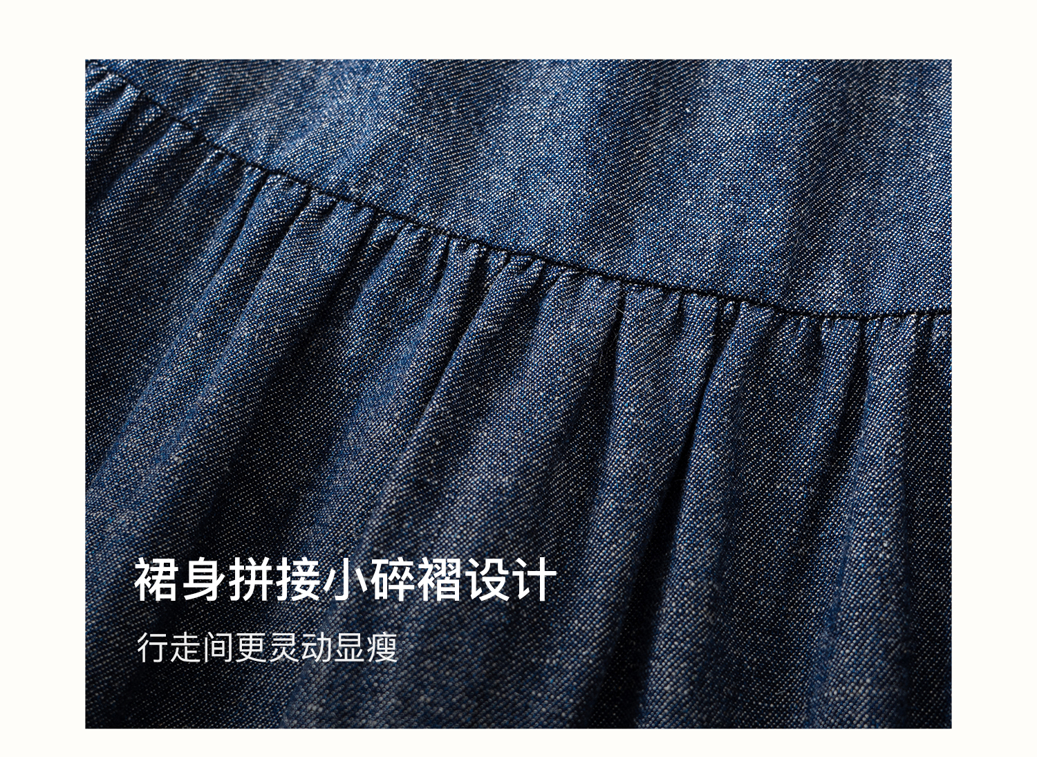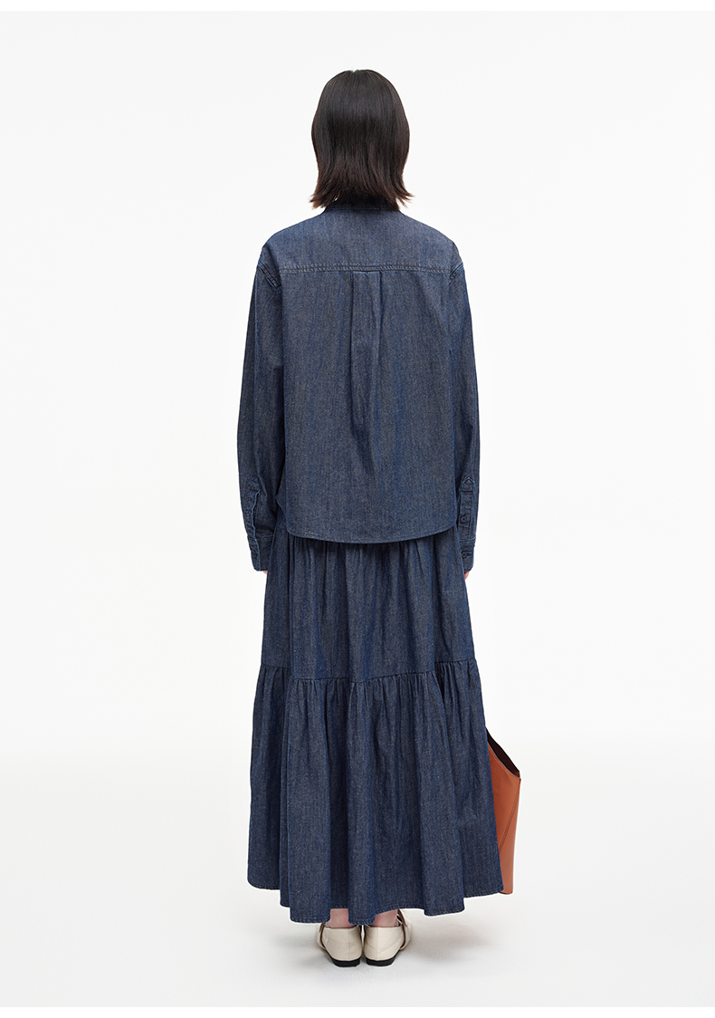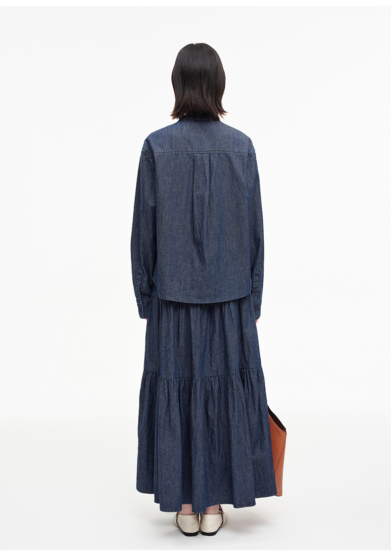 SELFWHO棉麻原蓝色复古牛仔衬衫女2025秋新款立体书页球装饰上衣