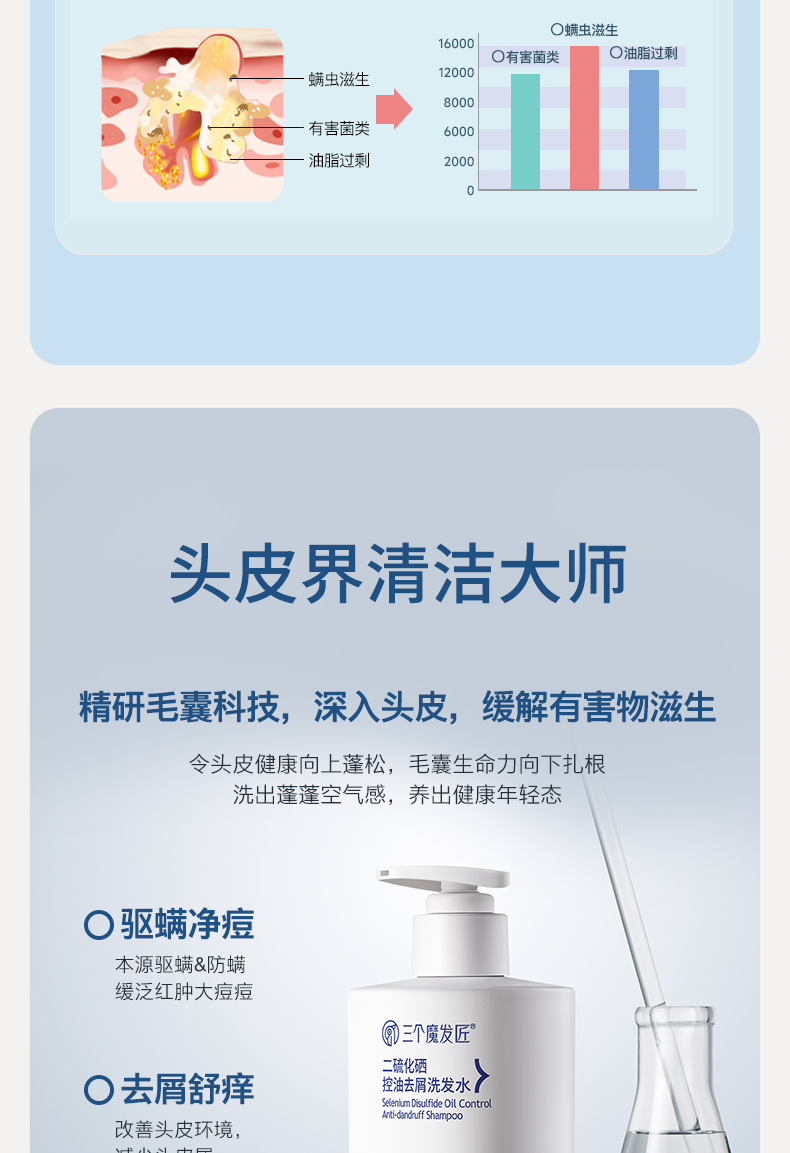 【买1送1】三个魔发匠二硫化硒控油去屑洗发水 控油蓬松 去屑柔顺 深入头皮缓解有害物滋生 实测有效