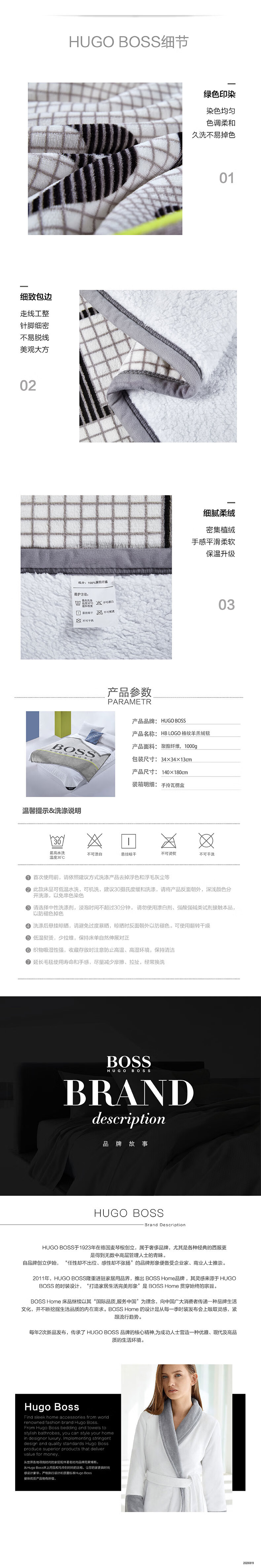 Hugo Boss LOGO格纹羊羔绒毯 140×180cm