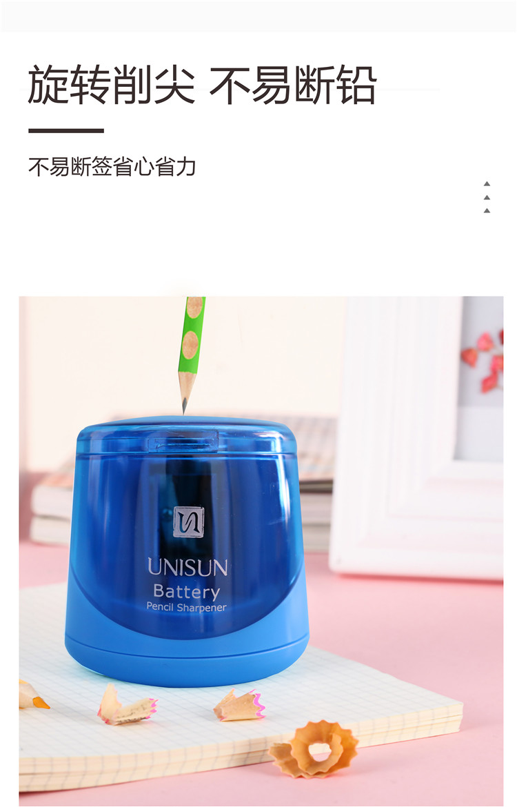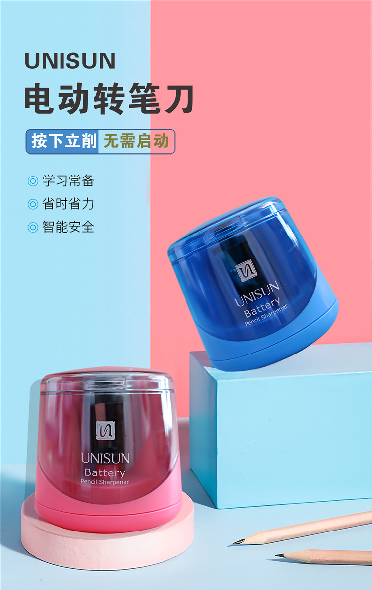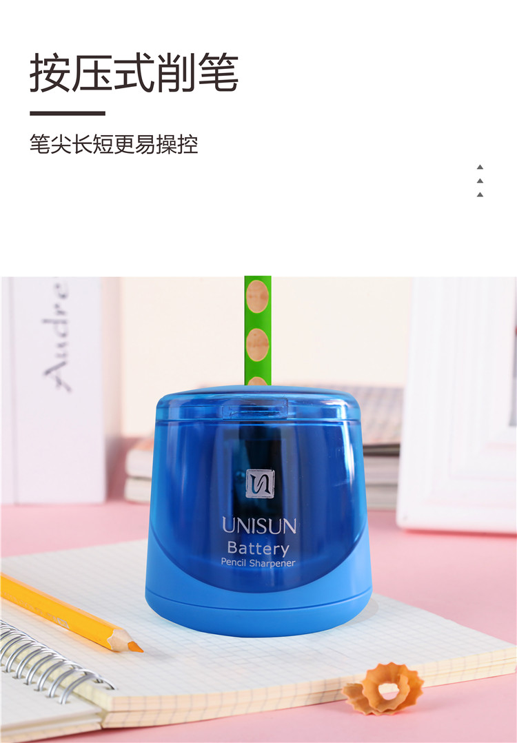 【UNISUN·电动削笔刀(赠刀头电池)】按压式削笔 使用安全 脚垫防滑