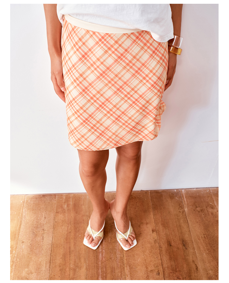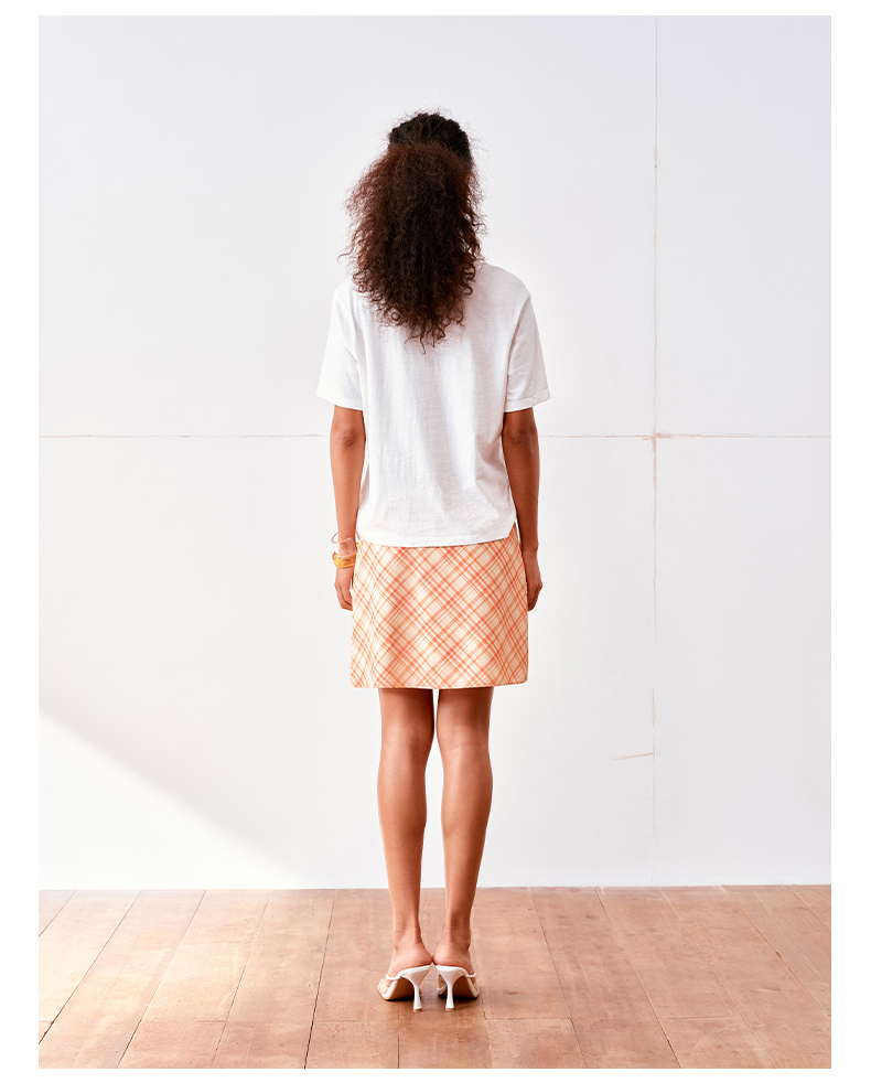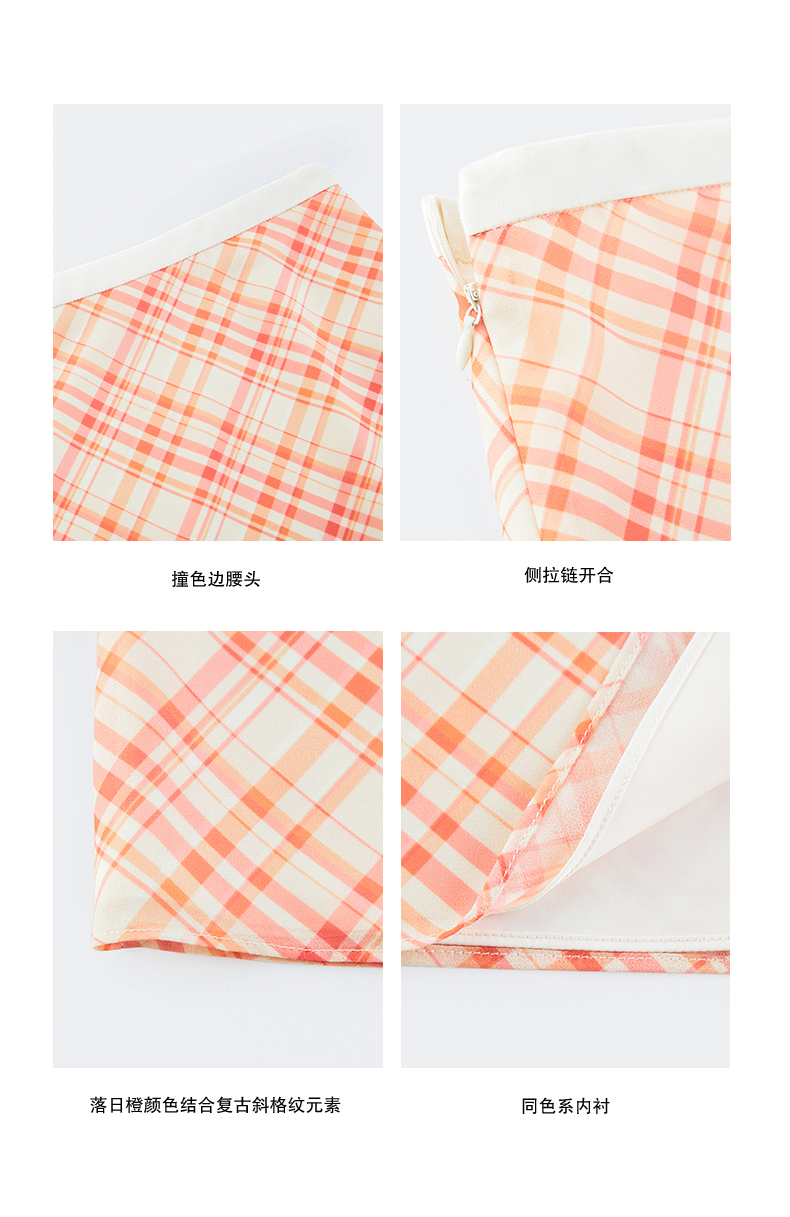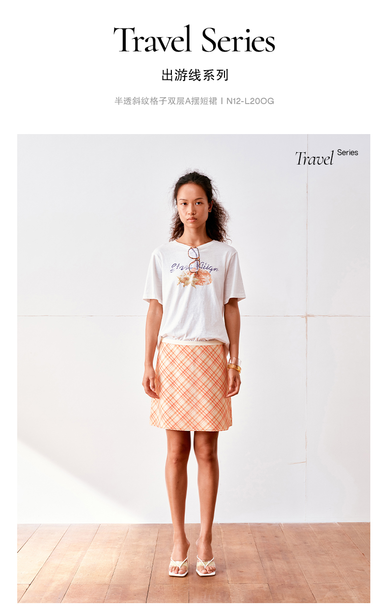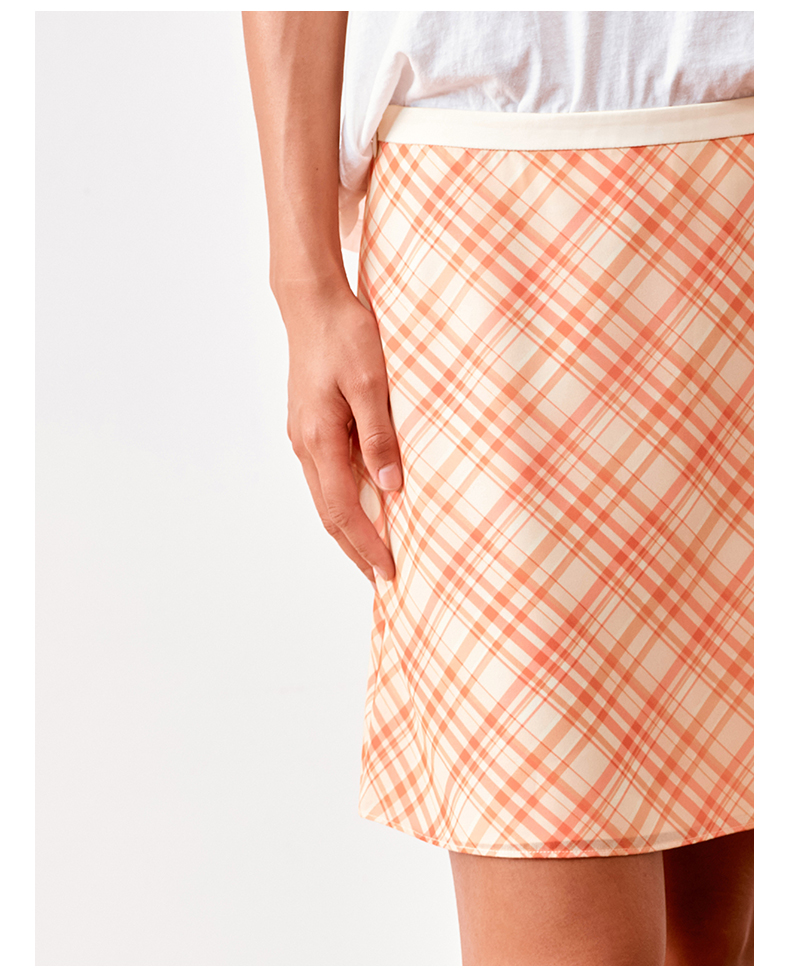 NUTH半透斜纹格子双层A摆短裙半身裙