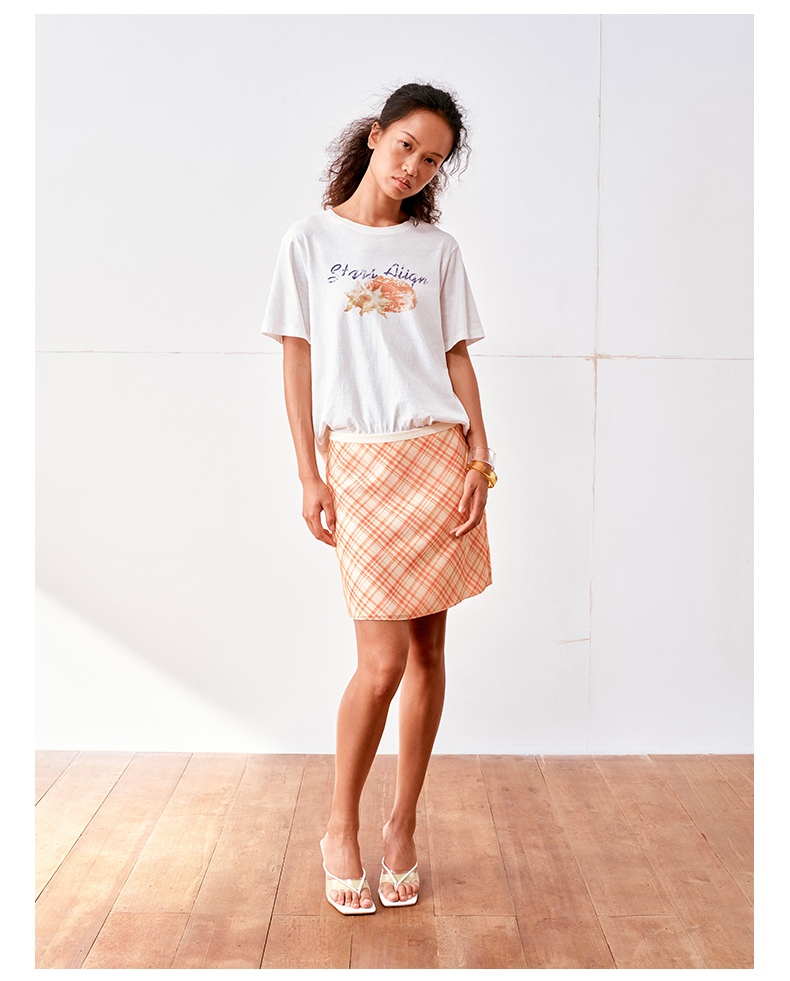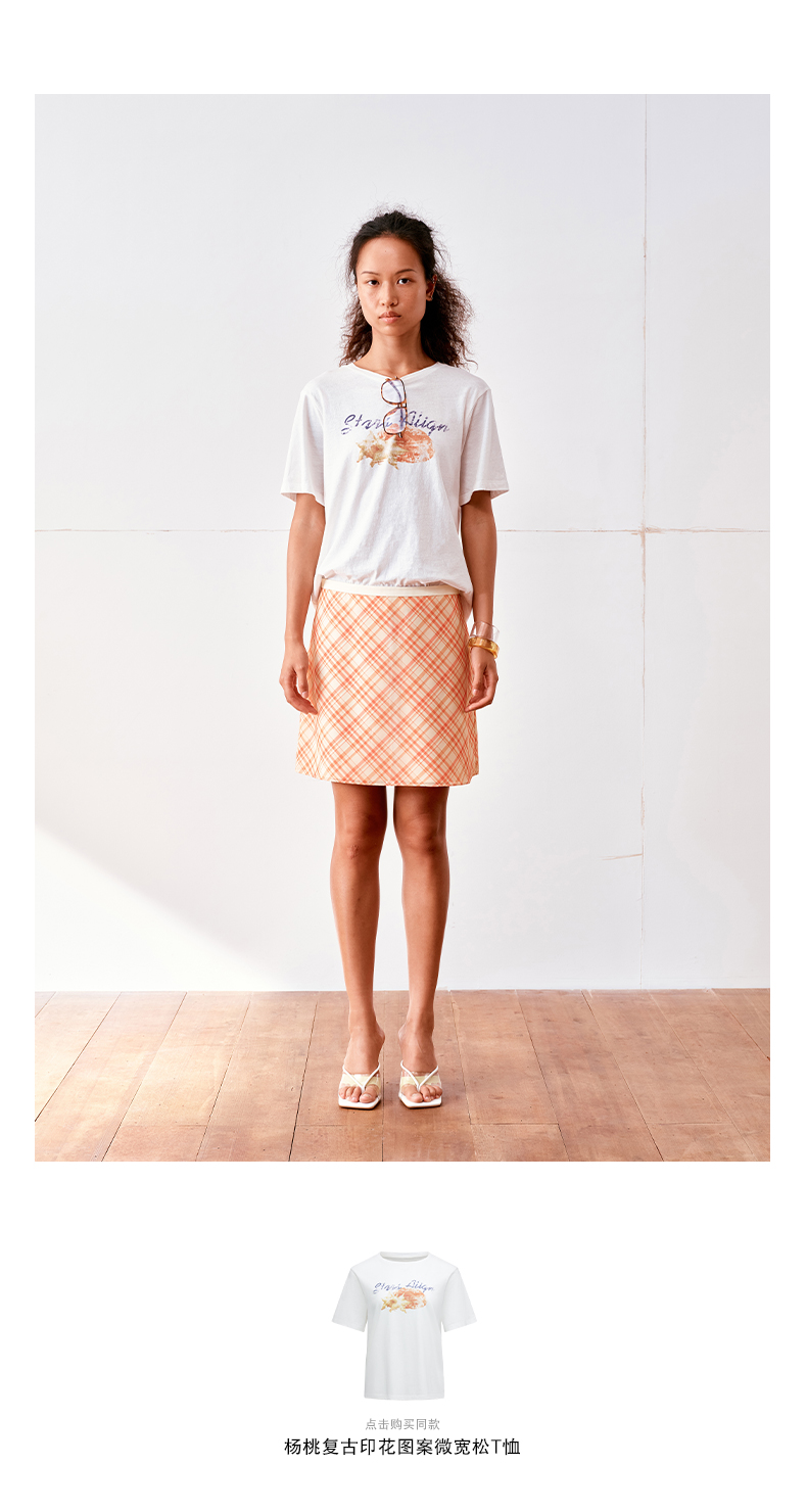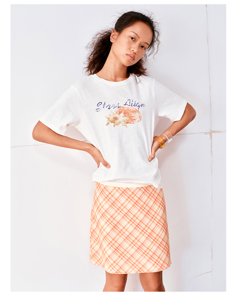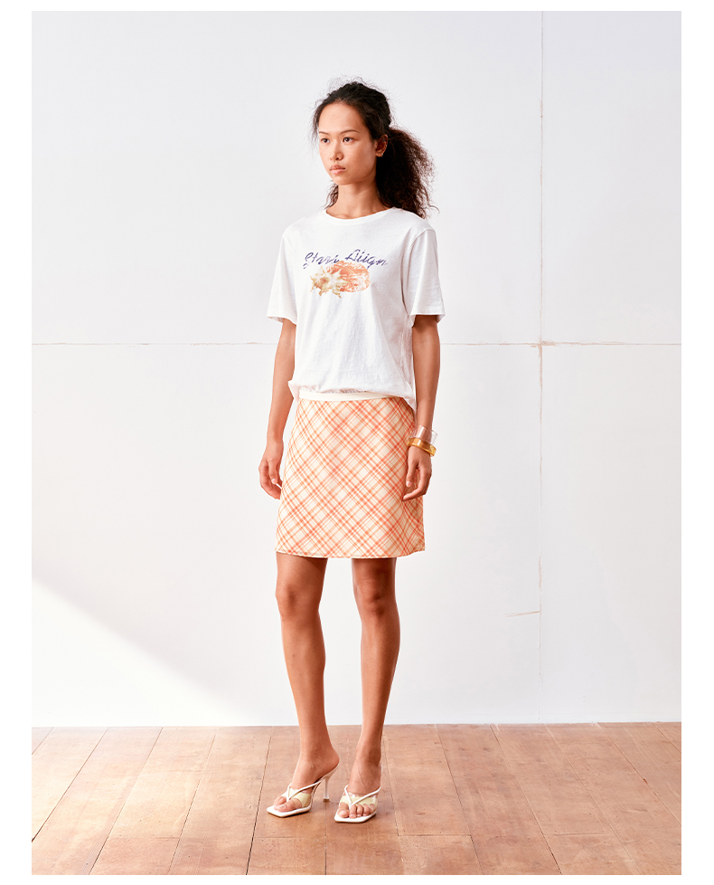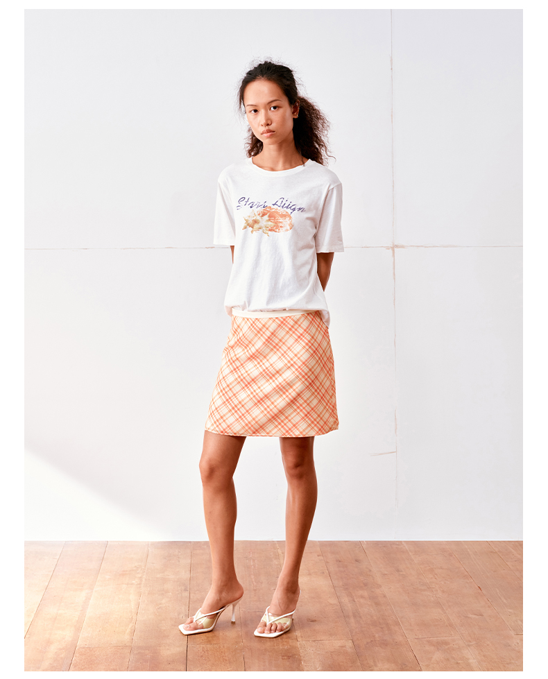 NUTH半透斜纹格子双层A摆短裙半身裙