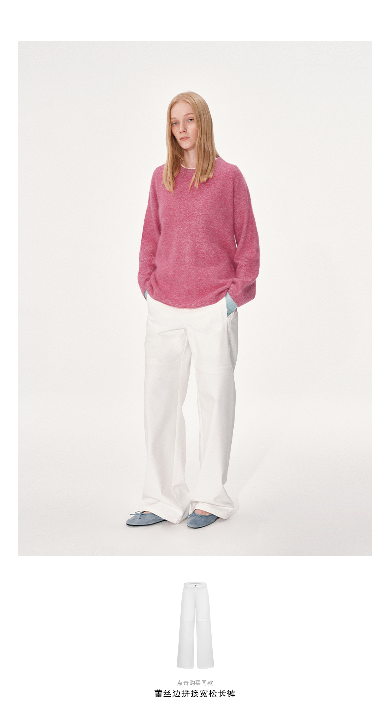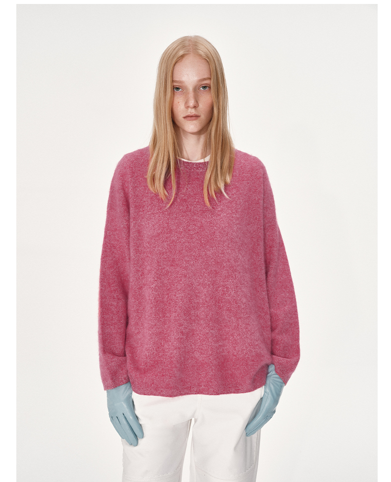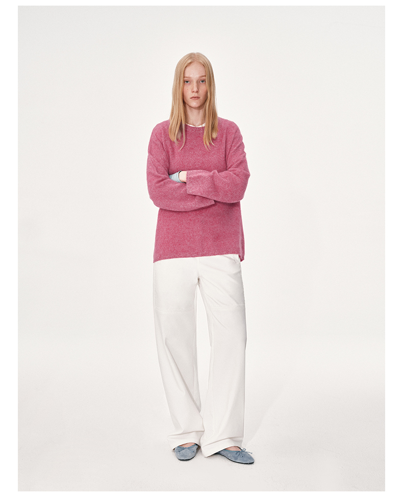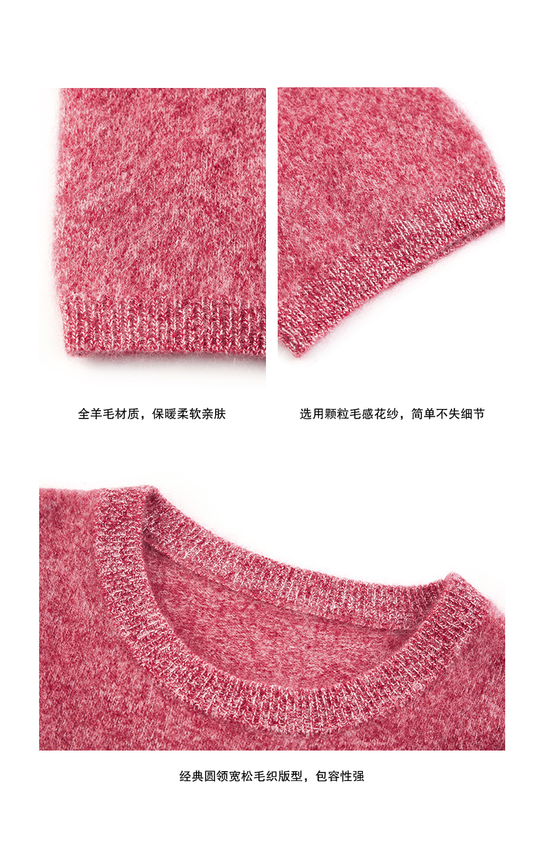 NUTH 100%绵羊毛圆领宽松保暖毛衣长袖针织衫女