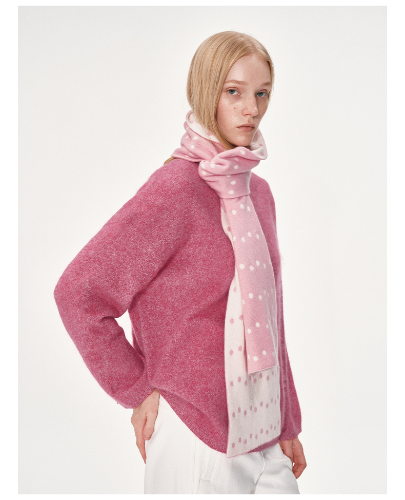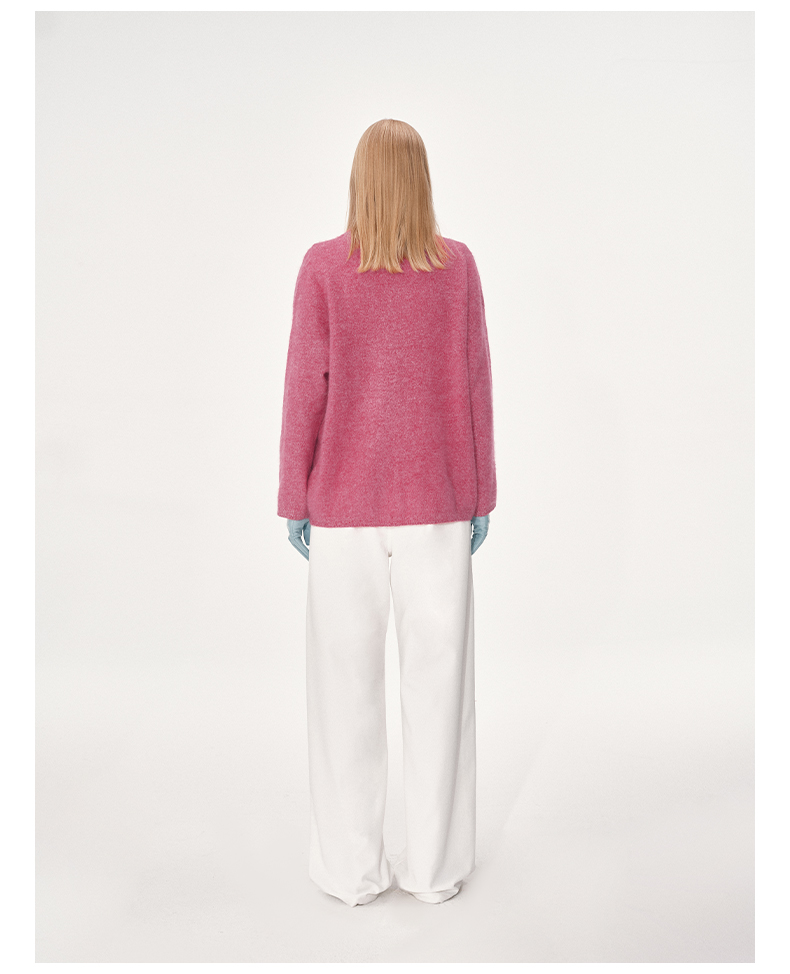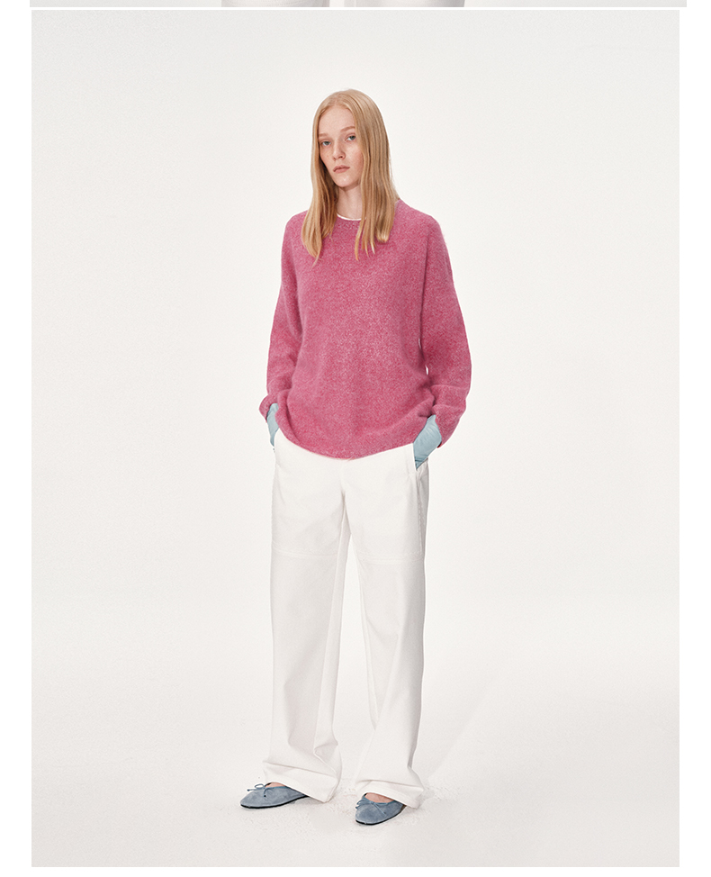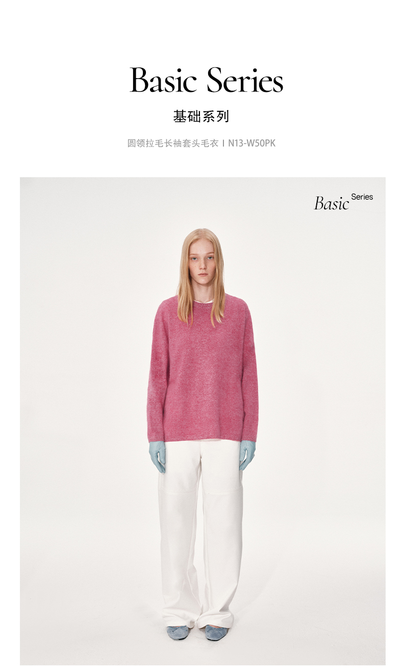 NUTH 100%绵羊毛圆领宽松保暖毛衣长袖针织衫女